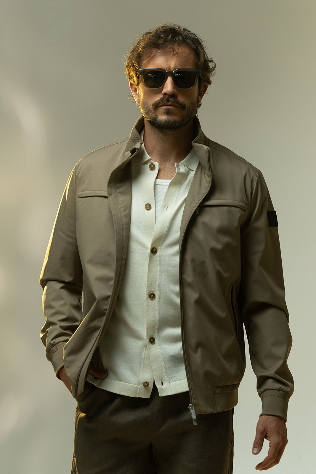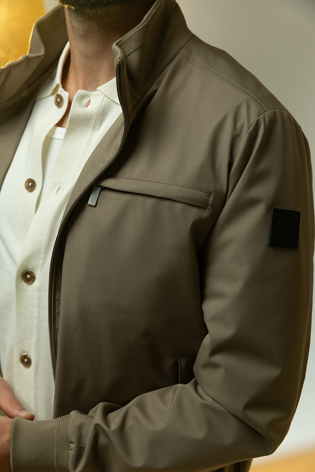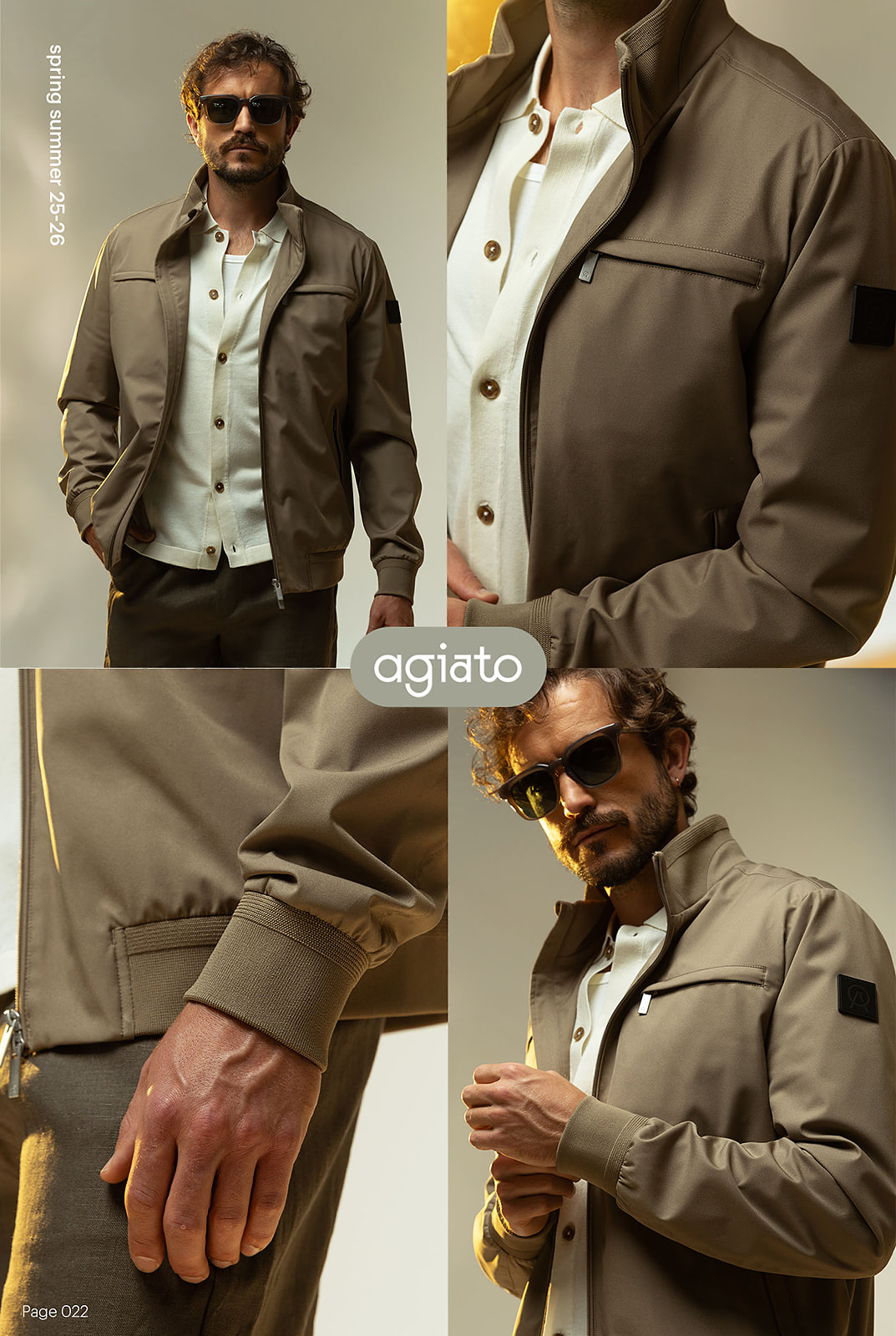 Een sportieve korte zomerjas van het Italiaanse merk Agiato. De jas is gemaakt van gerecycled polyester met een natural stretch. De jas is voorzien van 2 binnenzakken en 2 buitenzakken en nog een 2 zakjes op de borst.