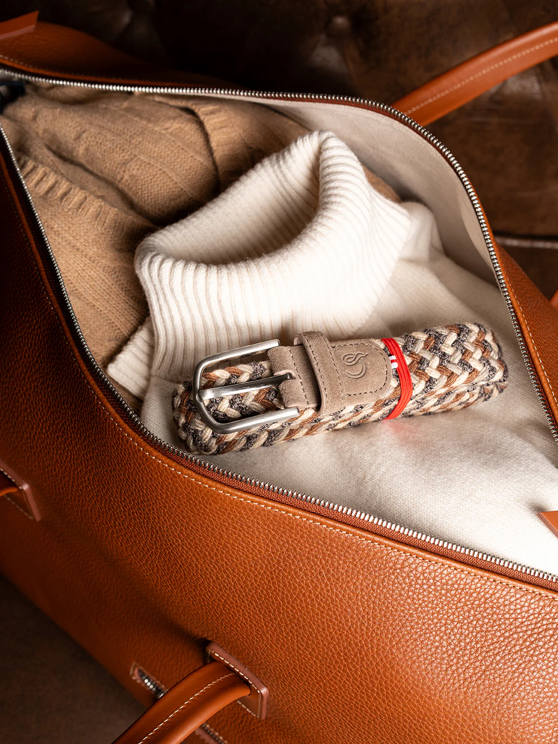 Een hele mooie wool effect gevlochten riem van La Boucle. De riem is rekbaar en daardoor op iedere maat aan te passen.