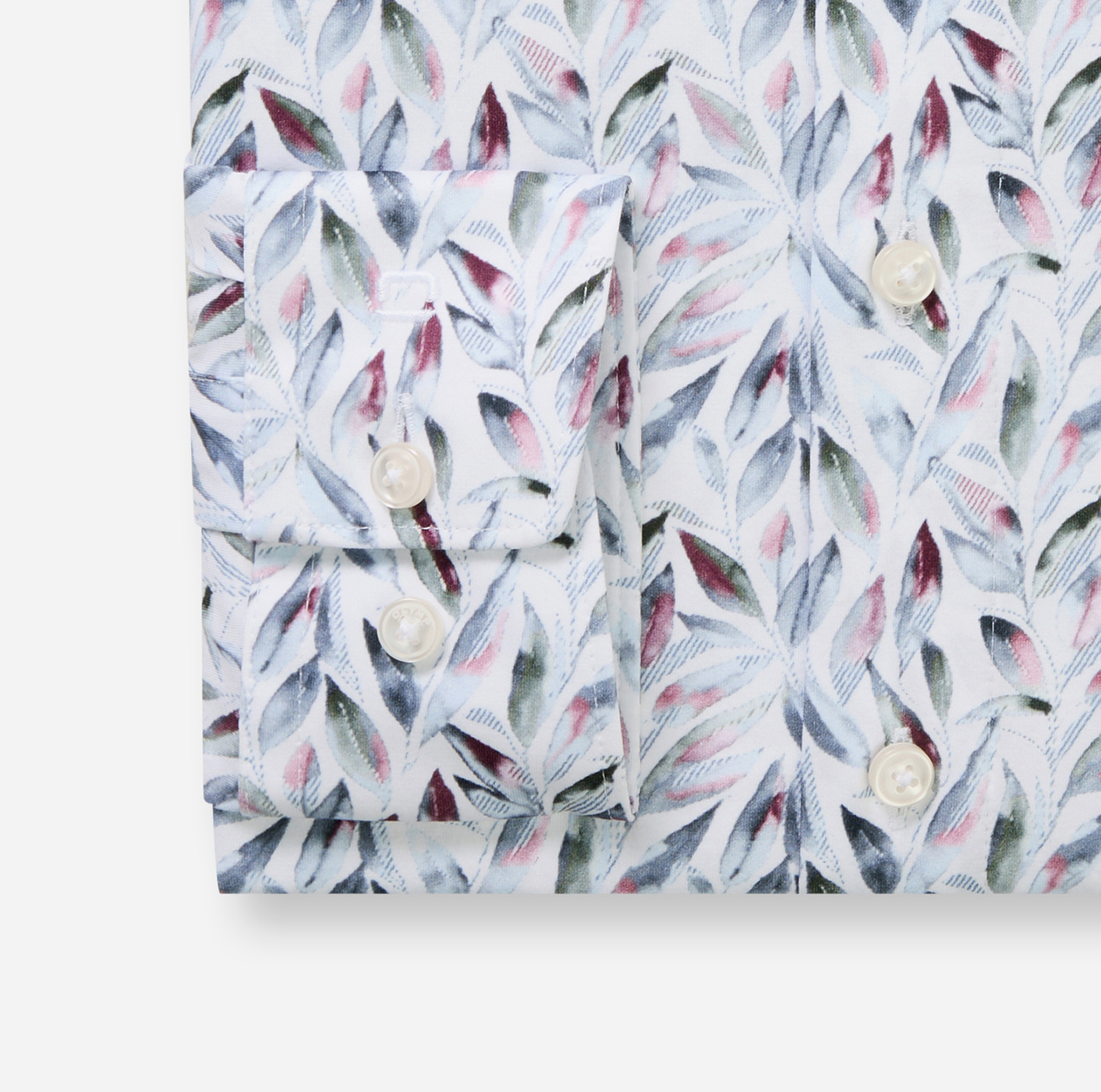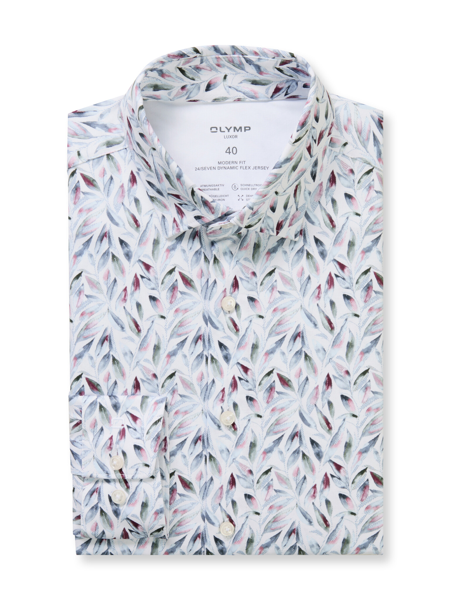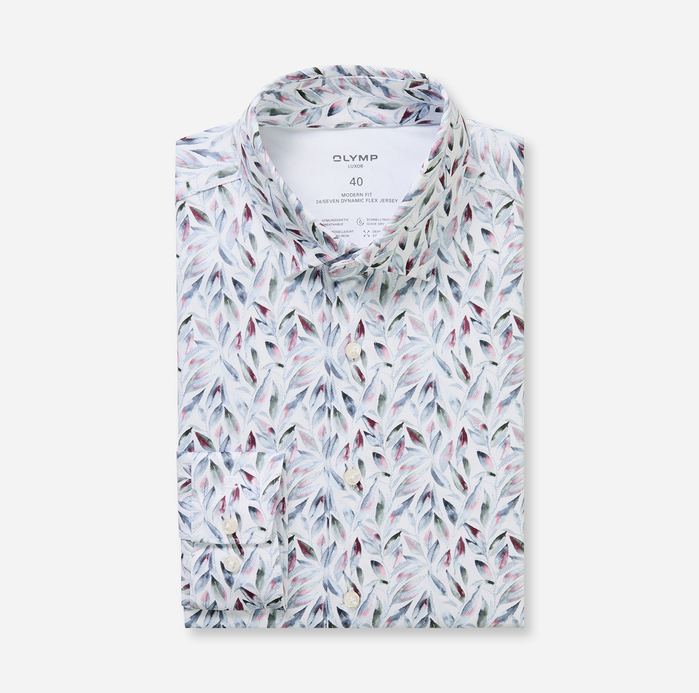 Een mooie overhemd van Olymp Jersey. Dit is het 24/seven dynamic flexshirt in modern fit een mooie bloemprint. Het shirt is kreuk en strijkvrij.