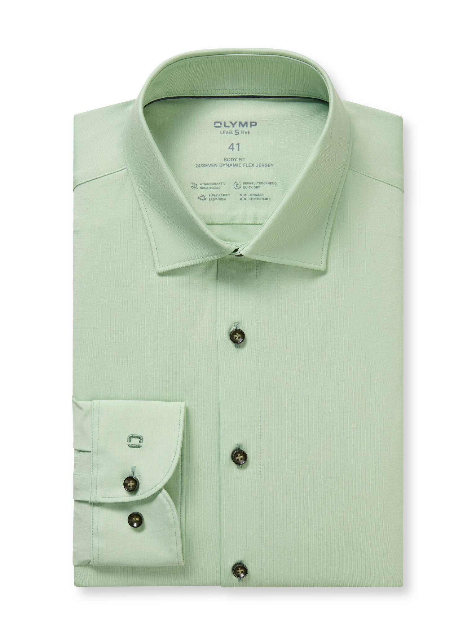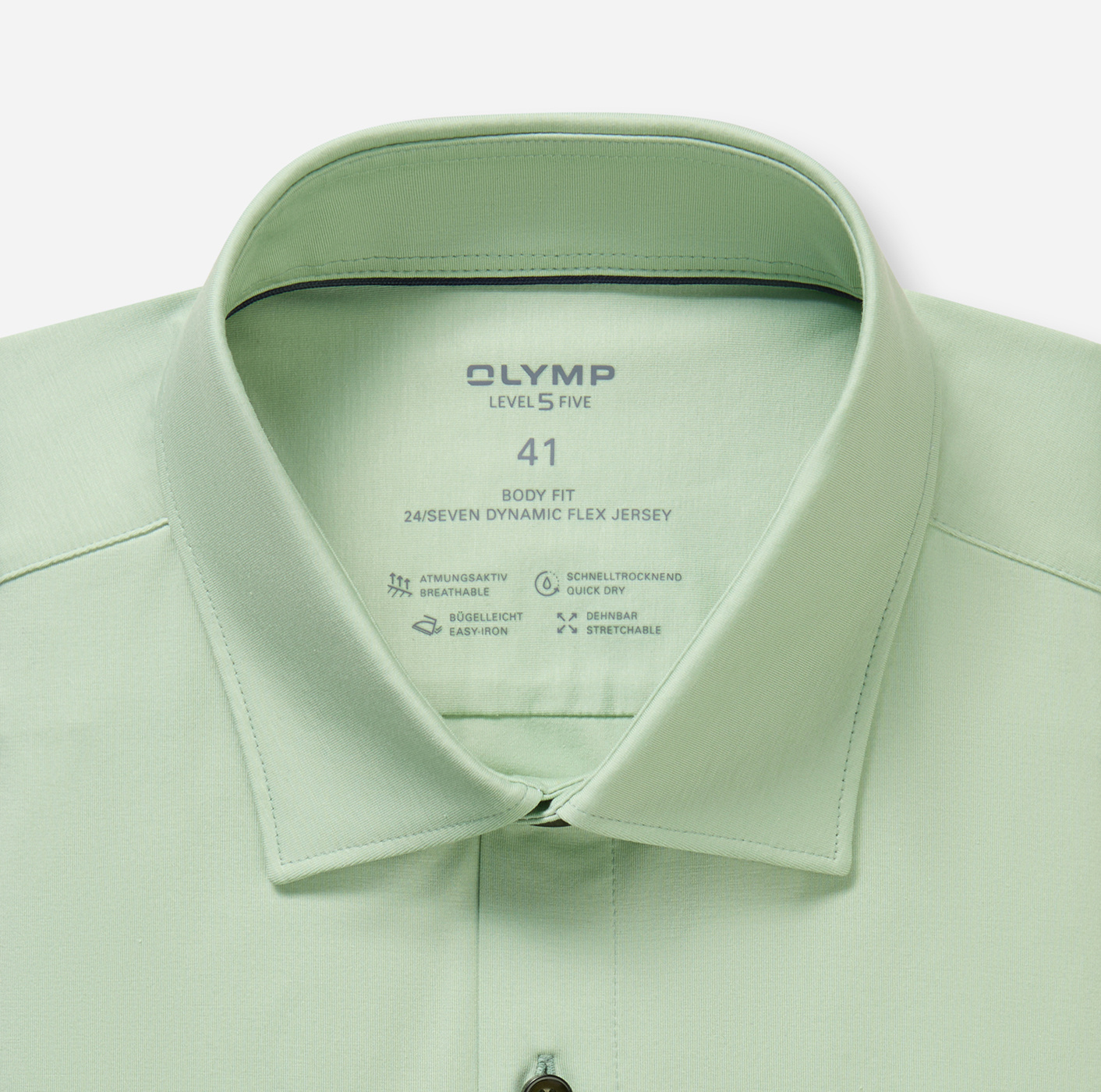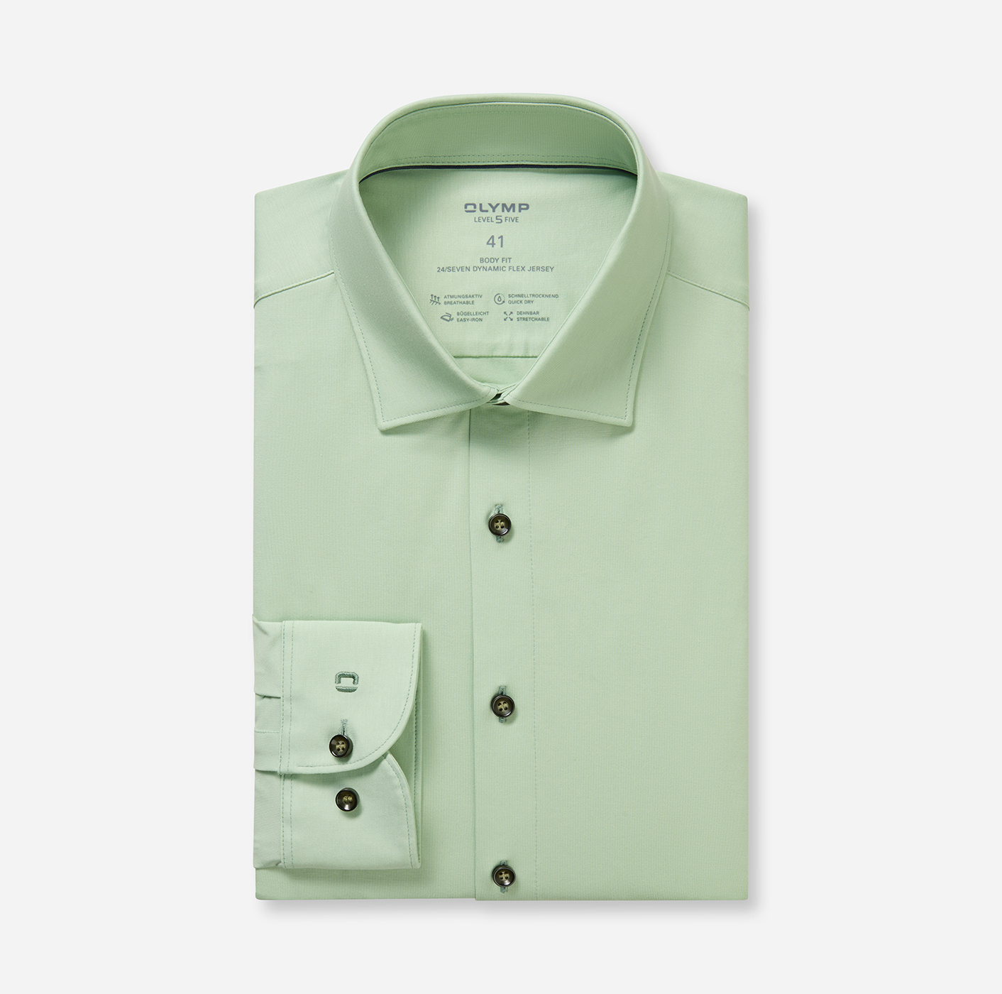 Een mooie overhemd van Olymp Jersey. Dit is het 24/seven dynamic flexshirt in Body fit. Het shirt is kreuk en strijkvrij.