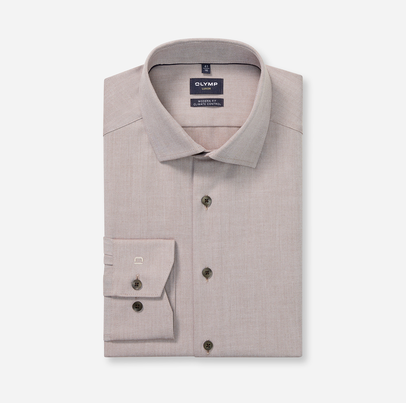 OLYMP Luxor 24/7 overhemd in een karakteristieke diagonale twill van innovatieve Climate Control-stof. Een overhemd dat zowel stijlvol als functioneel is. De zachte hightechstof is ademend, rekbaar, sneldrogend en temperatuur- en vochtregulerend. Nauwsluitende pasvorm, afgewerkt met een kosmopolitische Global Kent-kraag. Tijdbesparend en strijkvrij.