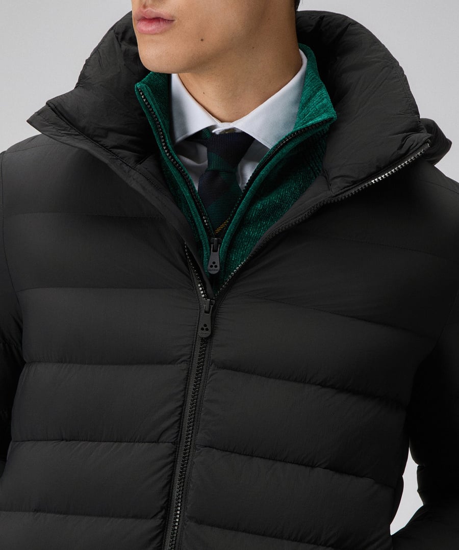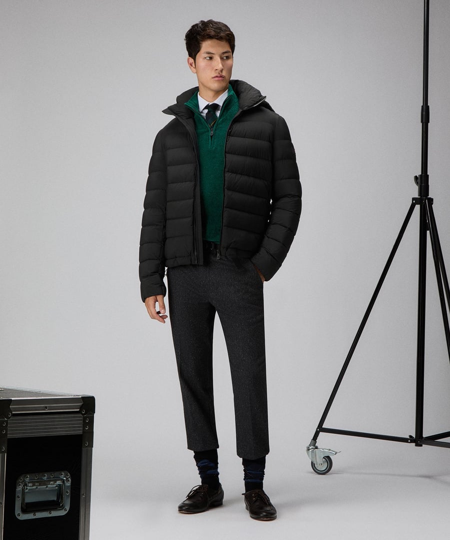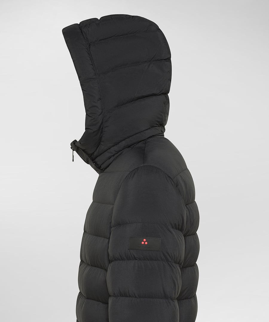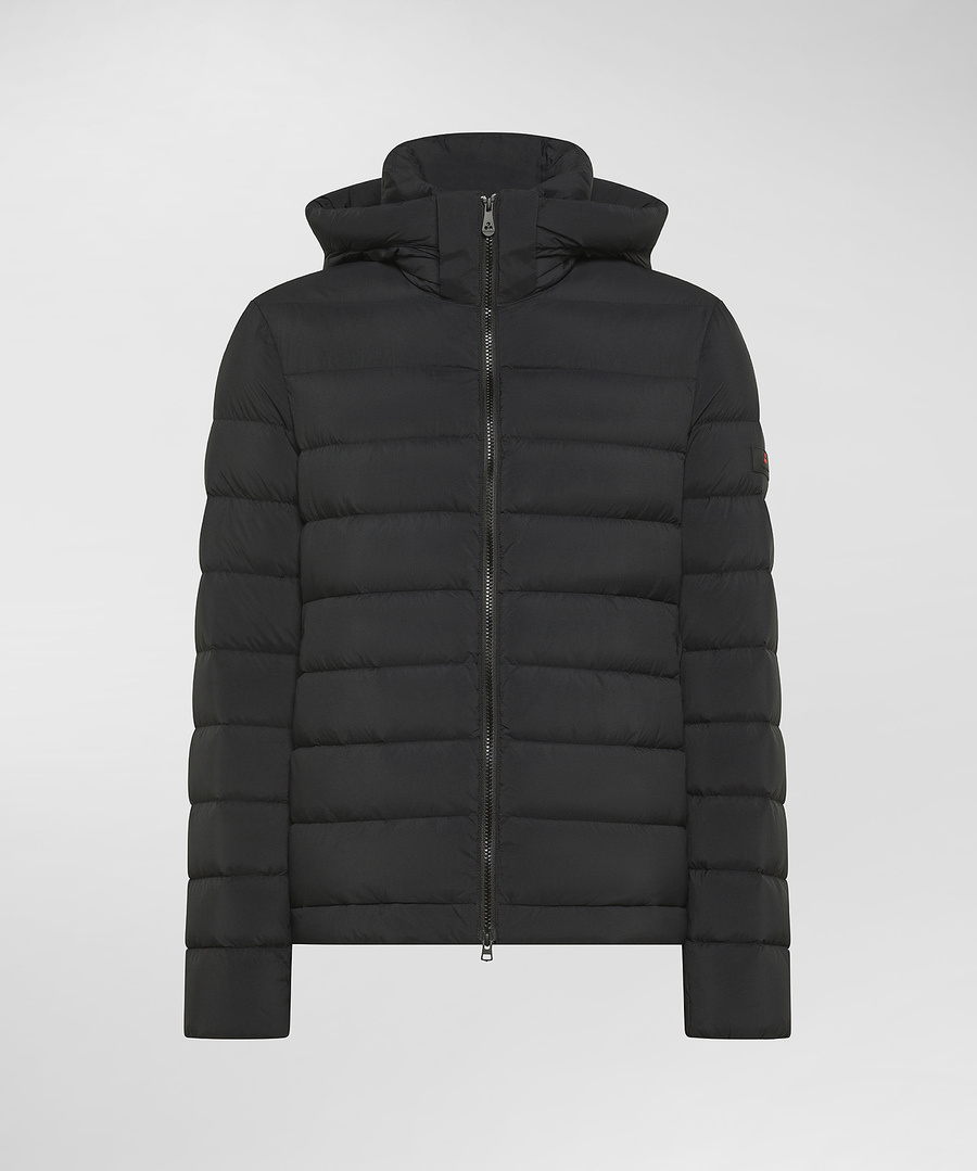 Een ultralichtgewicht nylon donsjack van 20 denier, weegt slechts 50 gram en heeft een semi-matte afwerking. De stiksels accentueren de essentiële lijnen van het kledingstuk, ontworpen voor maximale lichtheid en bescherming. De gecertificeerde natuurlijke donsvulling biedt warmte, ademend vermogen en comfort tijdens het koude seizoen. De stof is waterafstotend en donsdicht, met een PFC-vrije (gefluoreerde verbindingen) behandeling voor effectieve bescherming zonder schadelijke stoffen. Het ontwerp wordt gecompleteerd door een afneembare en verstelbare capuchon, opstaande kraag en zwarte details - een centrale ritssluiting met dubbele schuif, onzichtbare zijzakken en winddichte manchetten - om het sportieve en veelzijdige karakter te benadrukken. Met zijn casual stijl en normale pasvorm zal dit donsjack je de hele dag vergezellen en ervoor zorgen dat je je 24/7 comfortabel voelt.