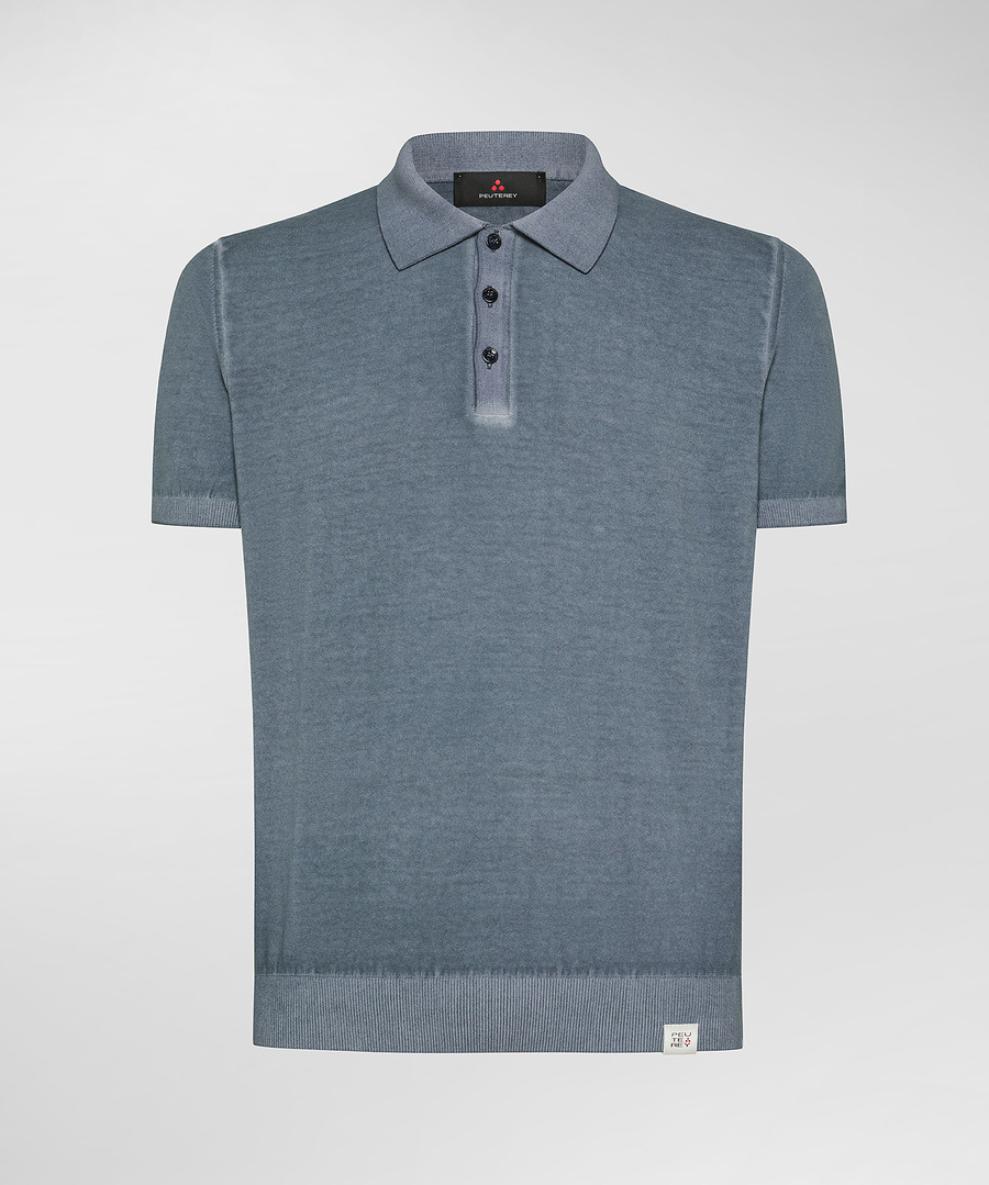 Poloshirt van 100% garment-dyed katoen met crêpe breisel, met een authentiek en verfijnd effect. Klassieke kraag met drieknoopsopening, om basisstijl en lichtgewicht comfort te combineren.