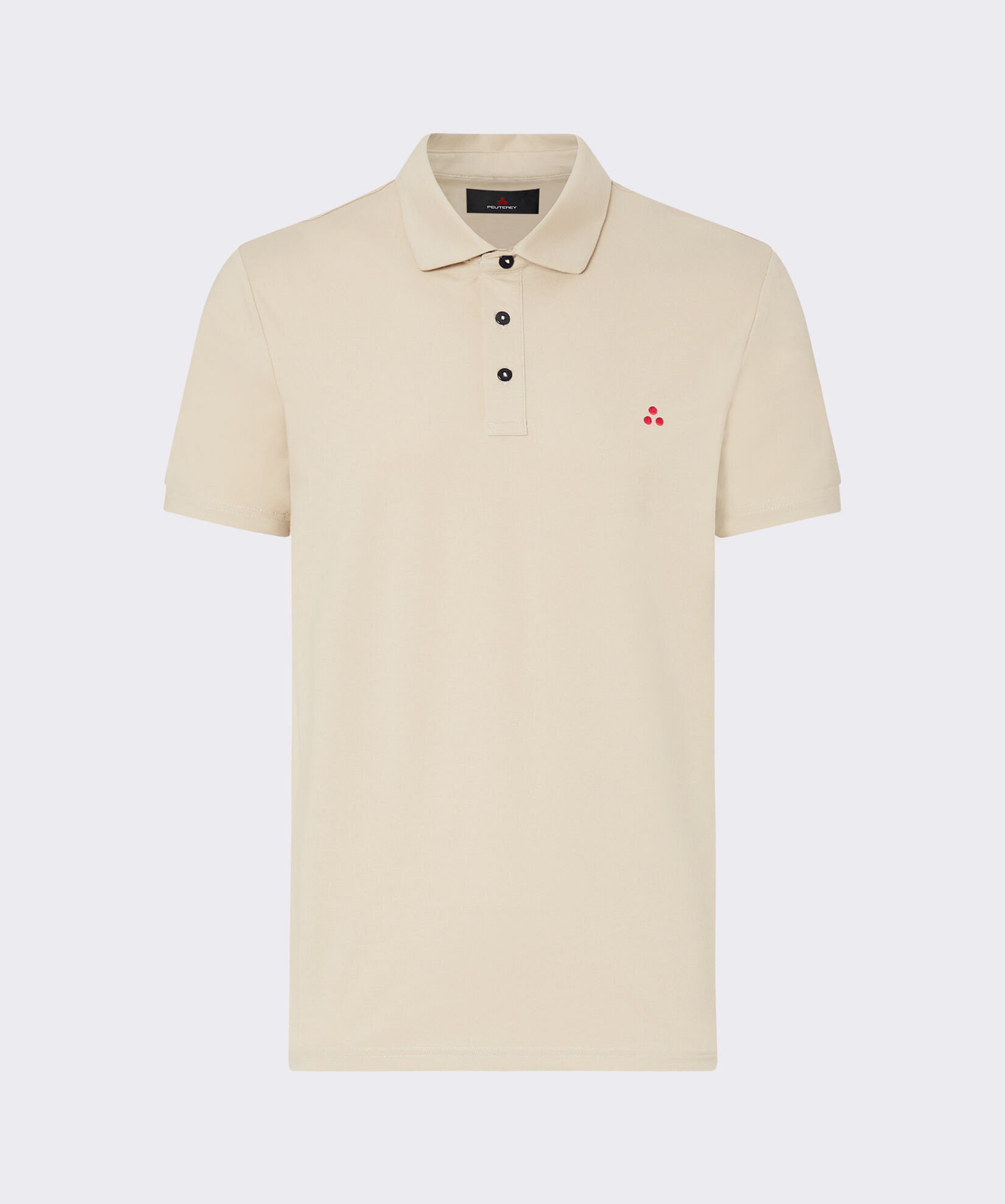Een prachtige polo korte mouw van Peuterey in het beige. Comfortabele en zachte stof met een natuurlijke, elegante uitstraling. Korte mouwen, klassieke kraag en geborduurd logo op de borst. Een must-have voor je zomergarderobe.