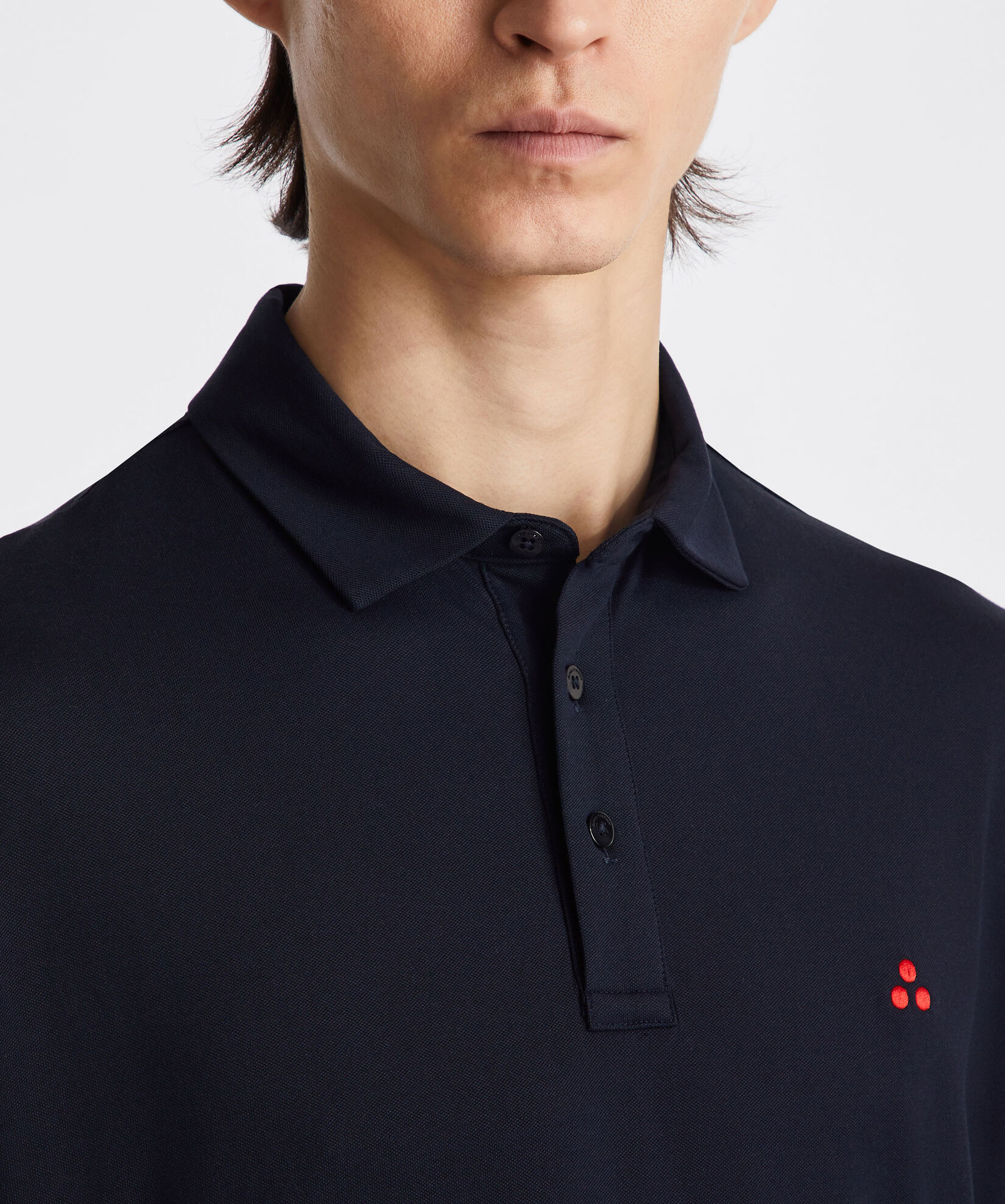 Een prachtige polo korte mouw van Peuterey in het navy. Comfortabele en zachte stof met een natuurlijke, elegante uitstraling. Korte mouwen, klassieke kraag en geborduurd logo op de borst. Een must-have voor je zomergarderobe.