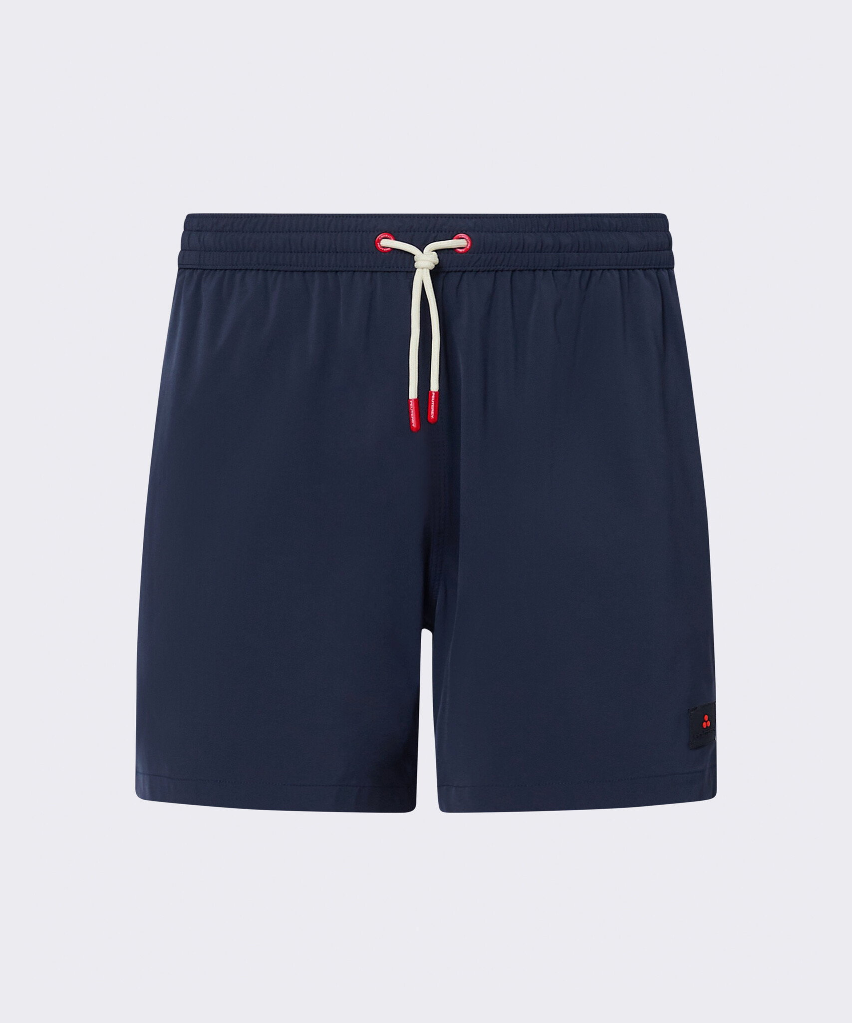 Extra lichtgewicht zwembroek van Peuterey in stretch nylon, een perfecte combinatie van praktisch en stijlvol. Functioneel ontwerp met steekzakken aan de zijkant en een achterzak, en een klein logo op het linkerbeen als subtiele details. De elastische tailleband is voorzien van verstelbare trekkoorden met rode inzetstukken en bijpassende oogjes voor een comfortabele en aanpasbare pasvorm. Lichtgewicht en comfortabel, ideaal voor een dagje strand.