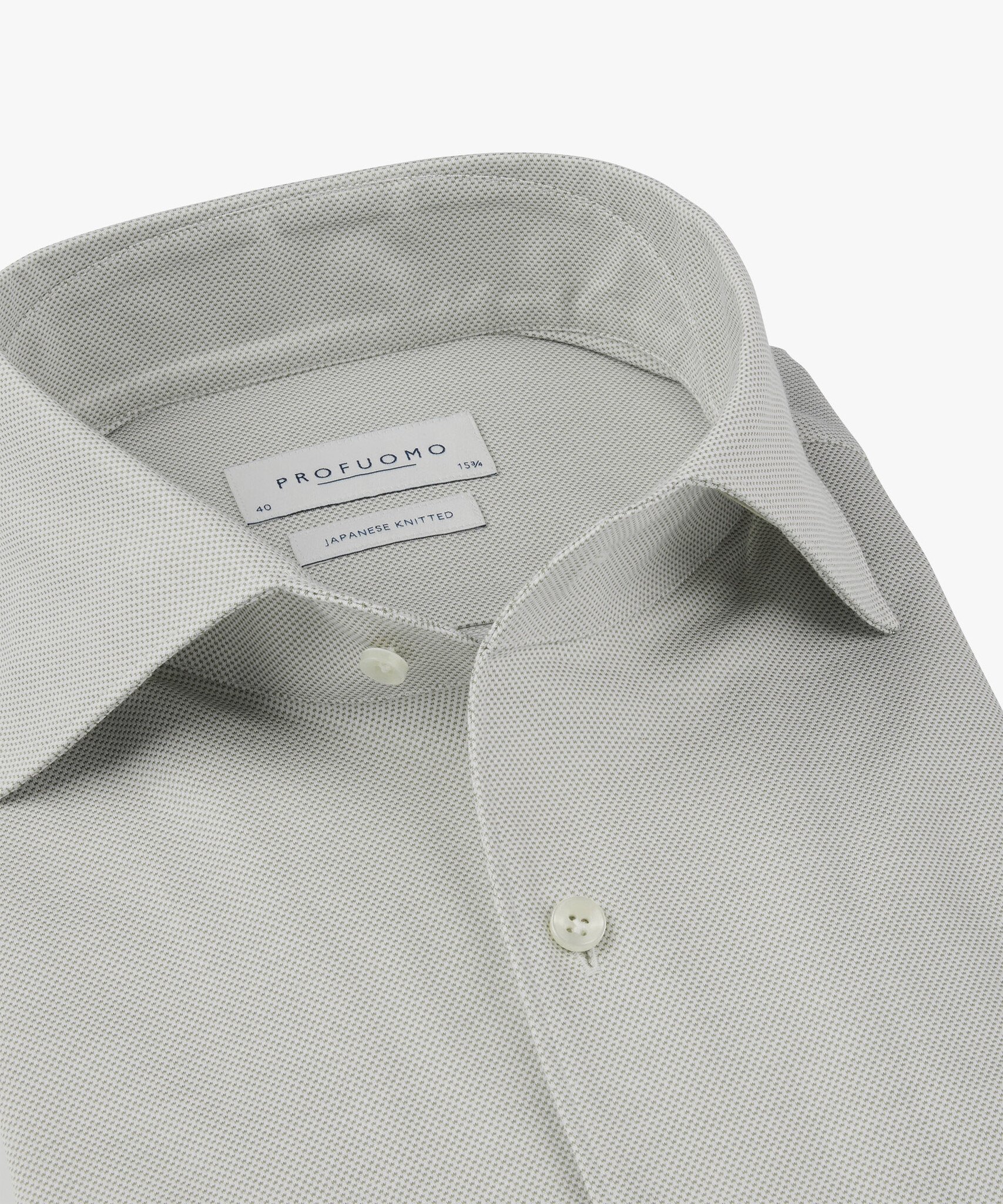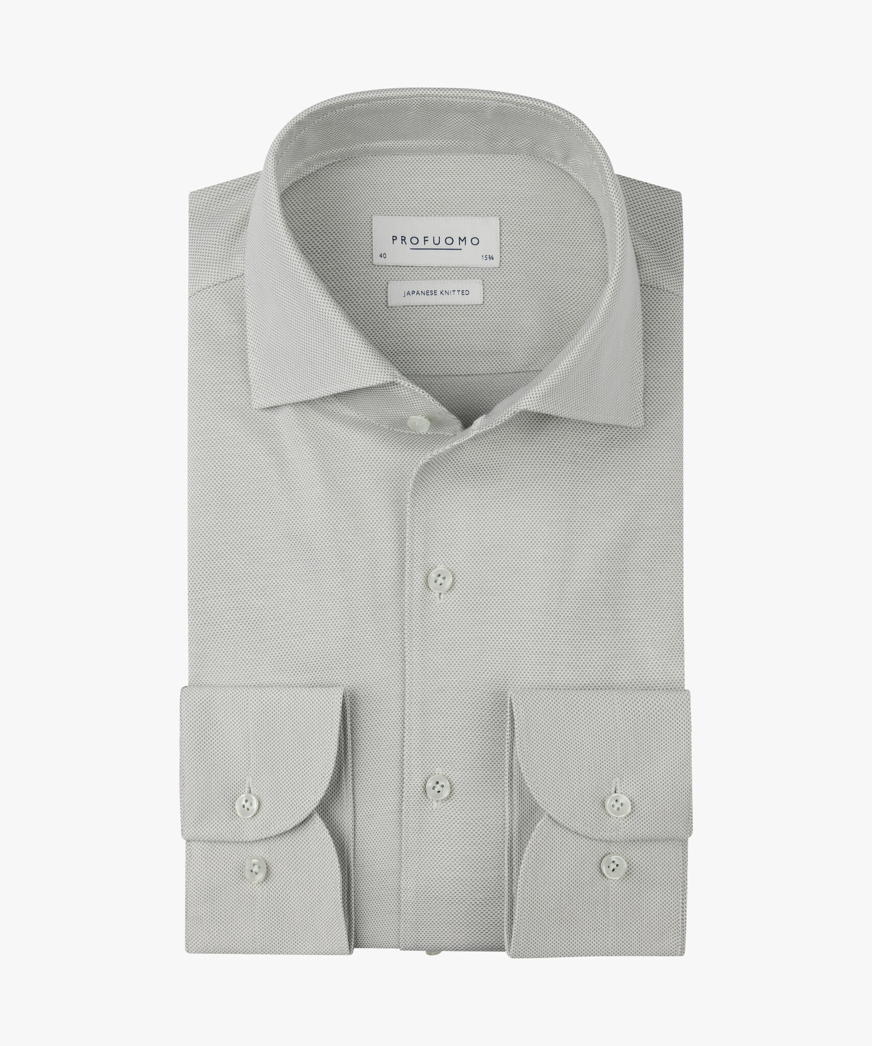Een mooie overhemd met een once piece collar van Profuomo in Japanese Knitted. De uitstraling van een overhemd maar met het draagcomfort van een -T-shirt. Dat is Japanese knitted. De once piece collar zorgt ervoor dat de boord mooi wijd uit blijft staan.
