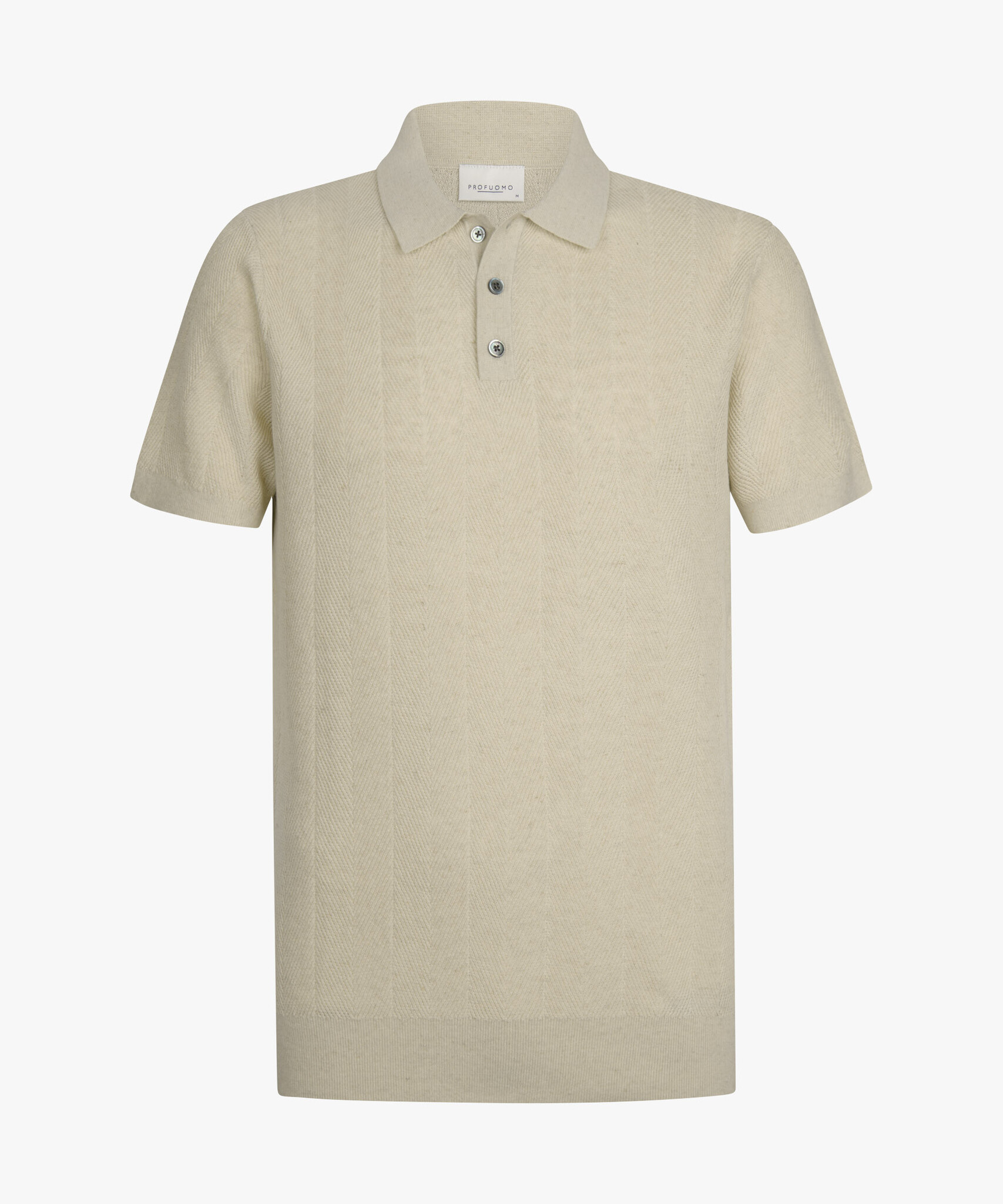 Een mooie polo met korte mouw van Profuomo. De polo heeft een mooie visgraad ingeweven en is gemaakt van katoen en linnen. Perfect voor de zomer.