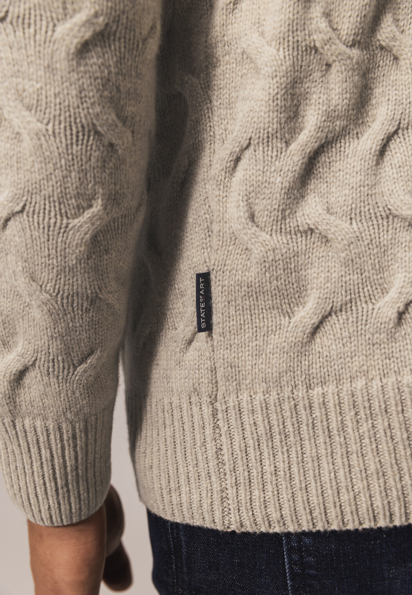 Deze regular fit trui met ronde hals is uitgevoerd in een verfijnd kabelgebreid motief dat een karakteristieke vlechtstructuur creëert. De mix van lambswool en polyamide biedt warmte en stevigheid, terwijl het reliëf in het breisel zorgt voor extra textuur en een onderscheidende uitstraling. Geribde boorden maken het geheel af.
