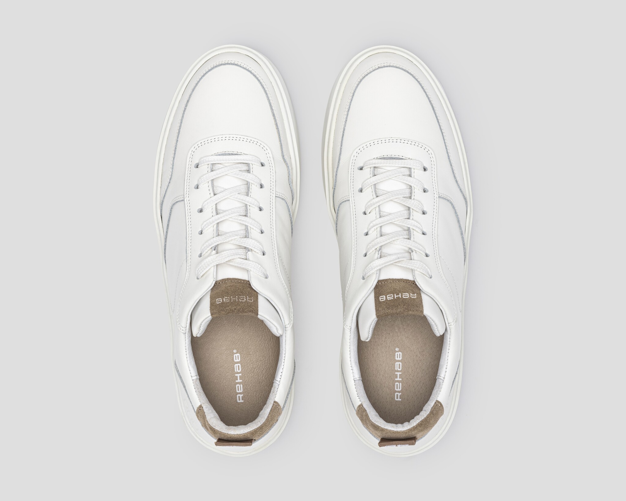 Witte lage sneaker van Rehab. De Oliver leather white is volledig leer, Platte zool en suede details.