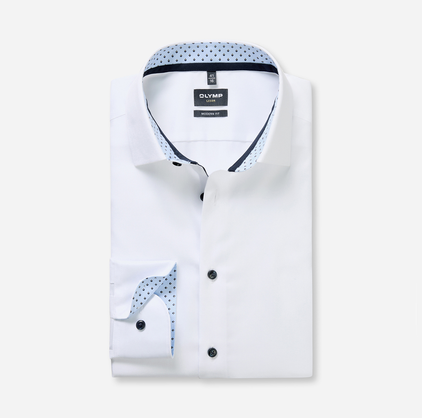 Een mooie overhemd van Olymp. Het is shirt is een Luxor modern fit in de non-iron kwaliteit. Het Olymp overhemd is voorzien van een contrast in de boord en manchet.