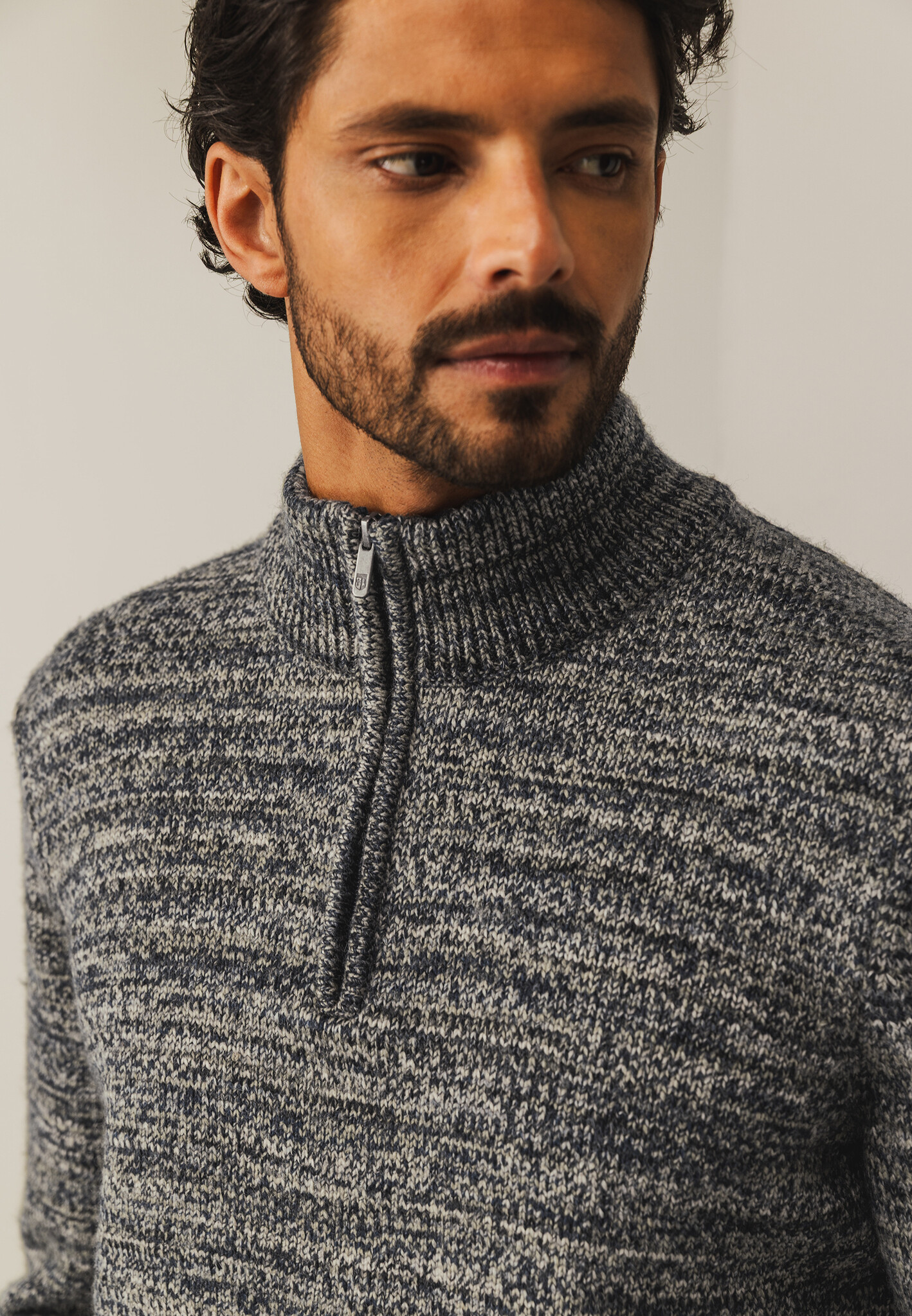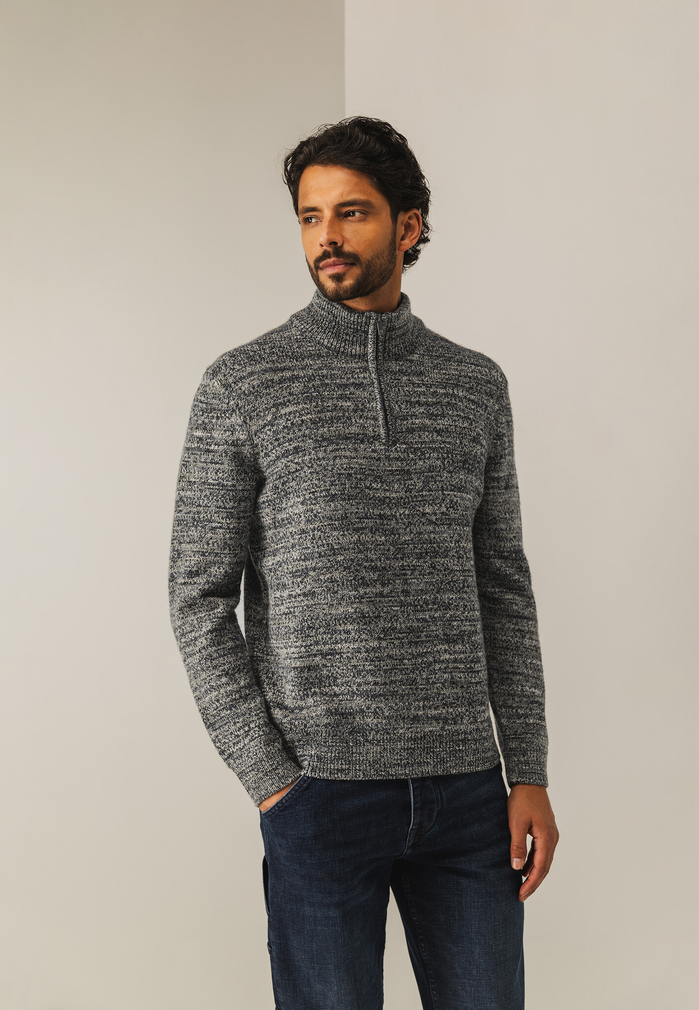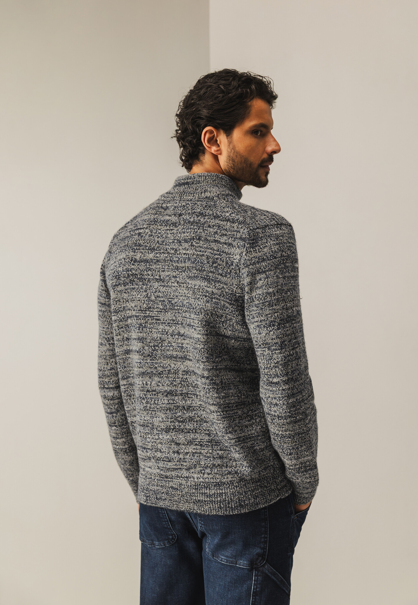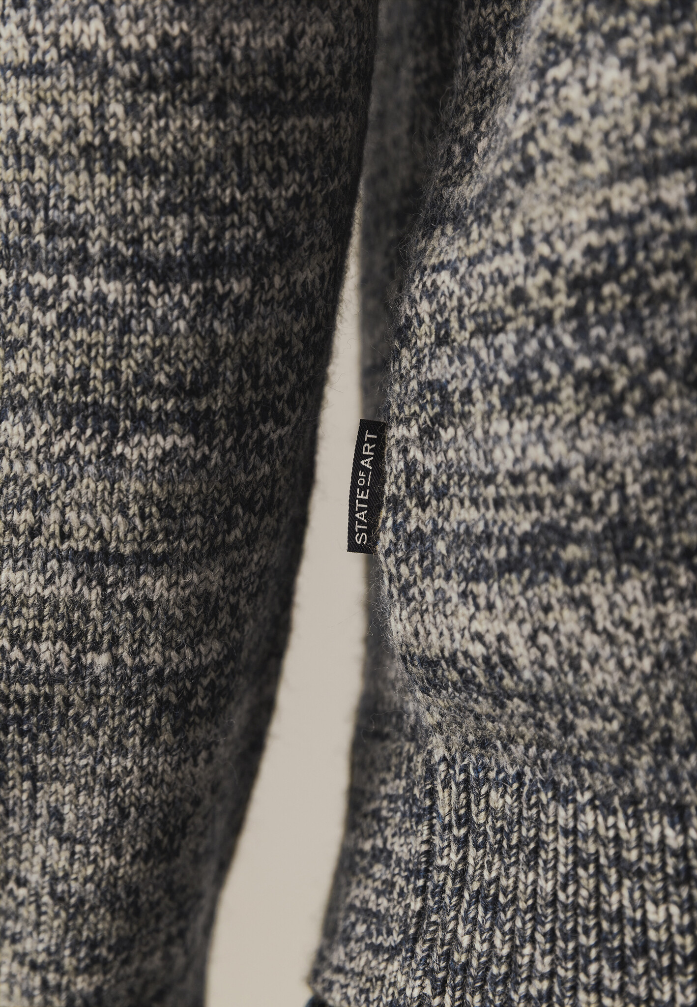 Deze grofgebreide trui met halve rits, rubberen badge op de mouw en regular fit heeft een uitgesproken gemêleerd dessin dat direct opvalt. De mix van acryl en wol voelt stevig maar zacht aan en biedt aangename warmte. Space dye-garen zorgt voor een bijzonder kleurverloop waardoor elke trui uniek is, met speelse kleuraccenten en diepte in het breisel.