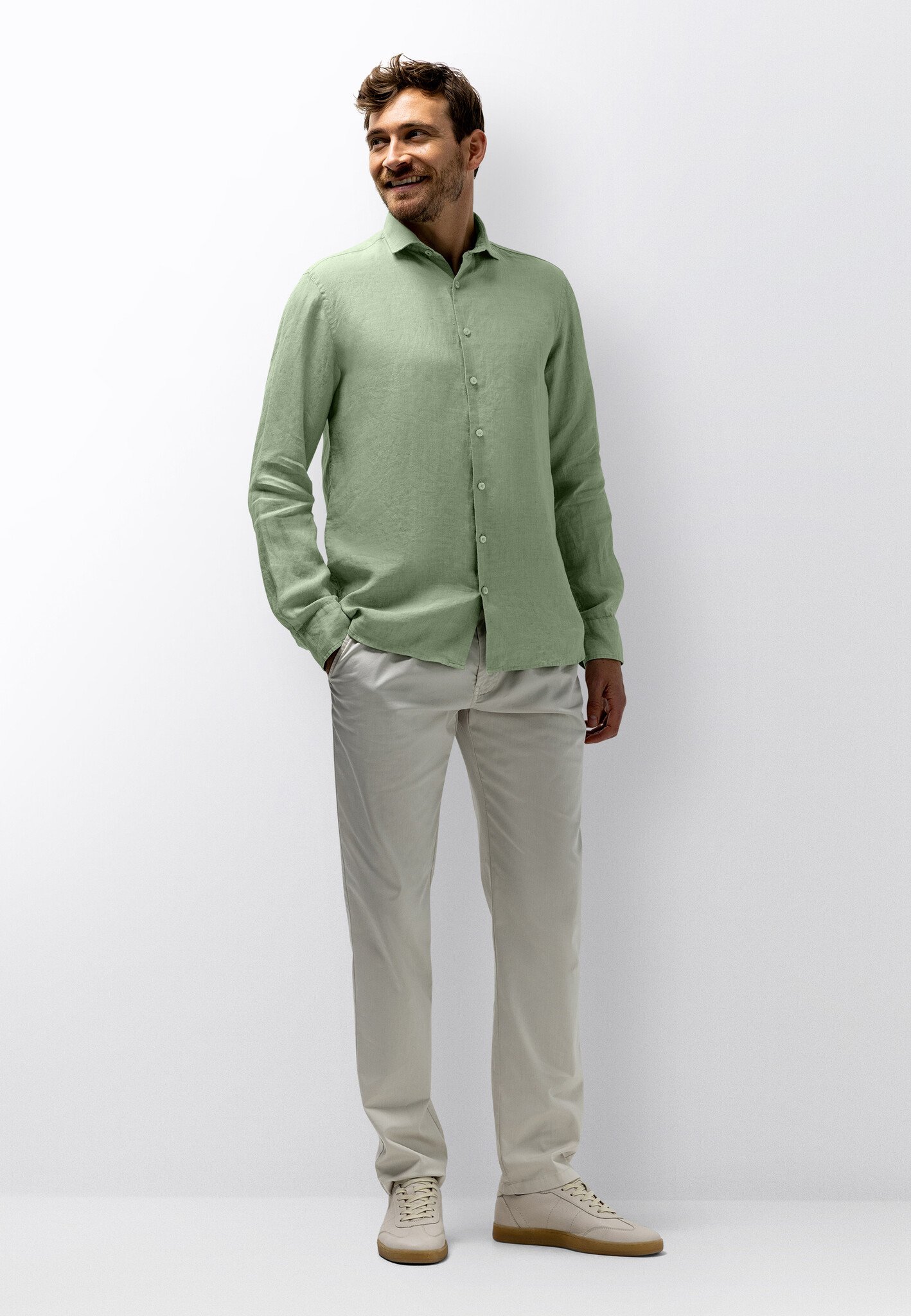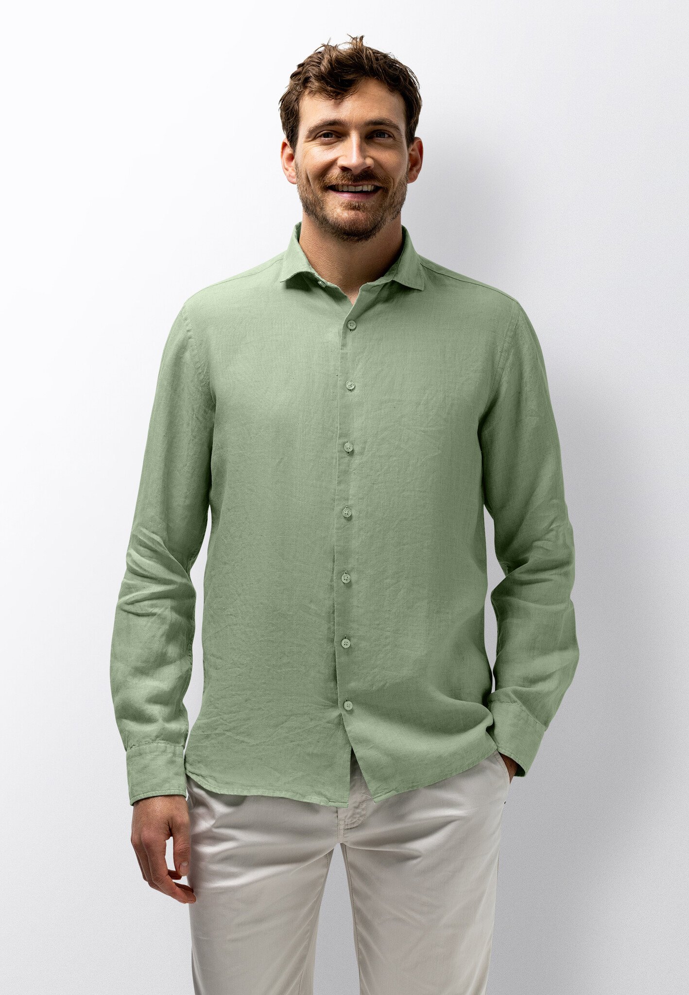 Linnen overhemd lange mouw licht groen