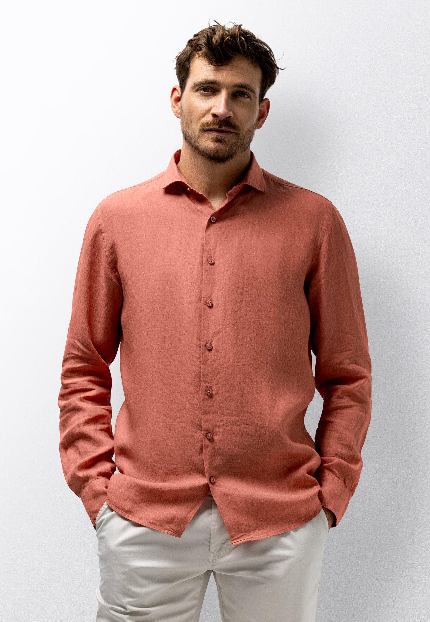 Linnen overhemd lange mouw old pink
