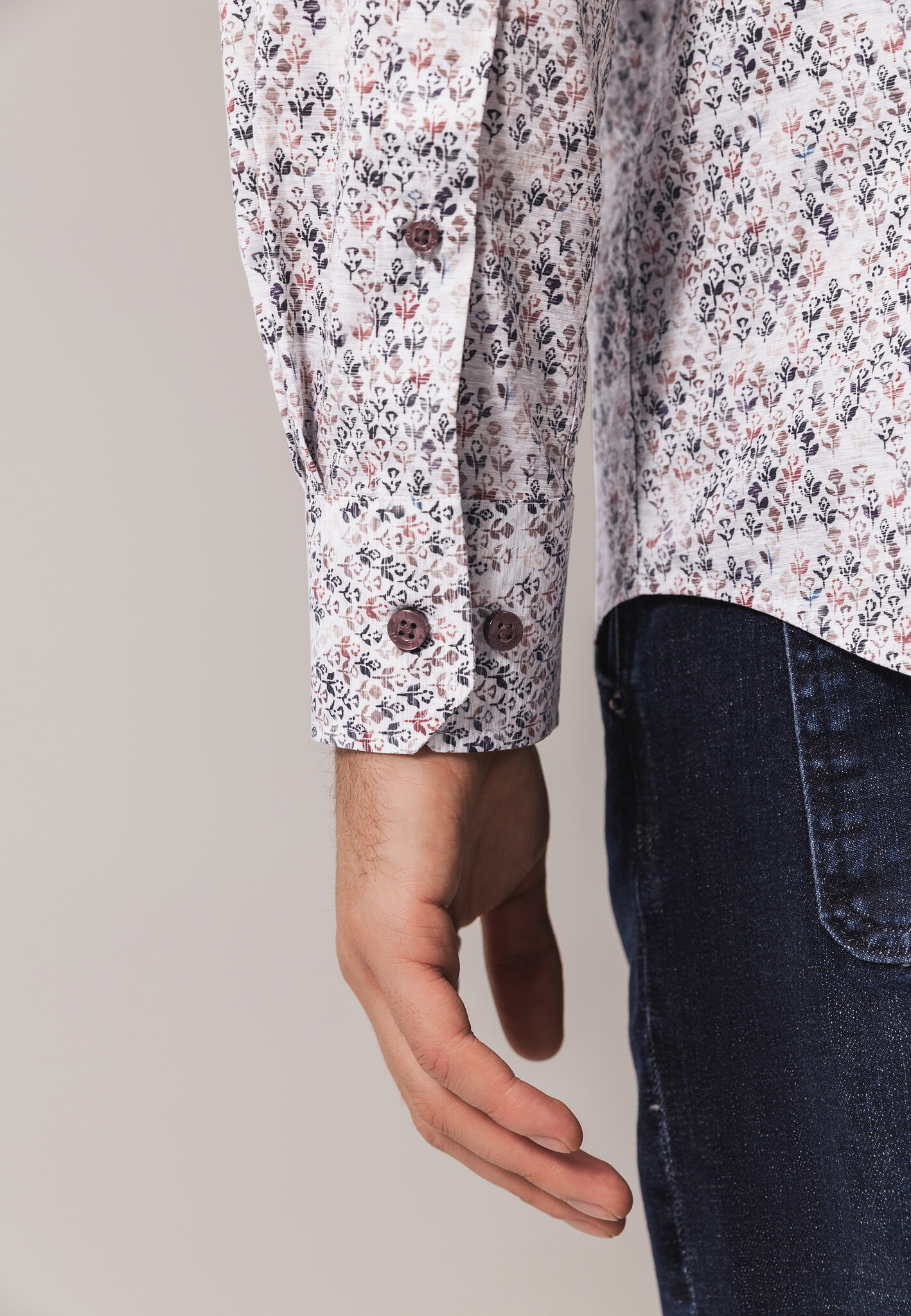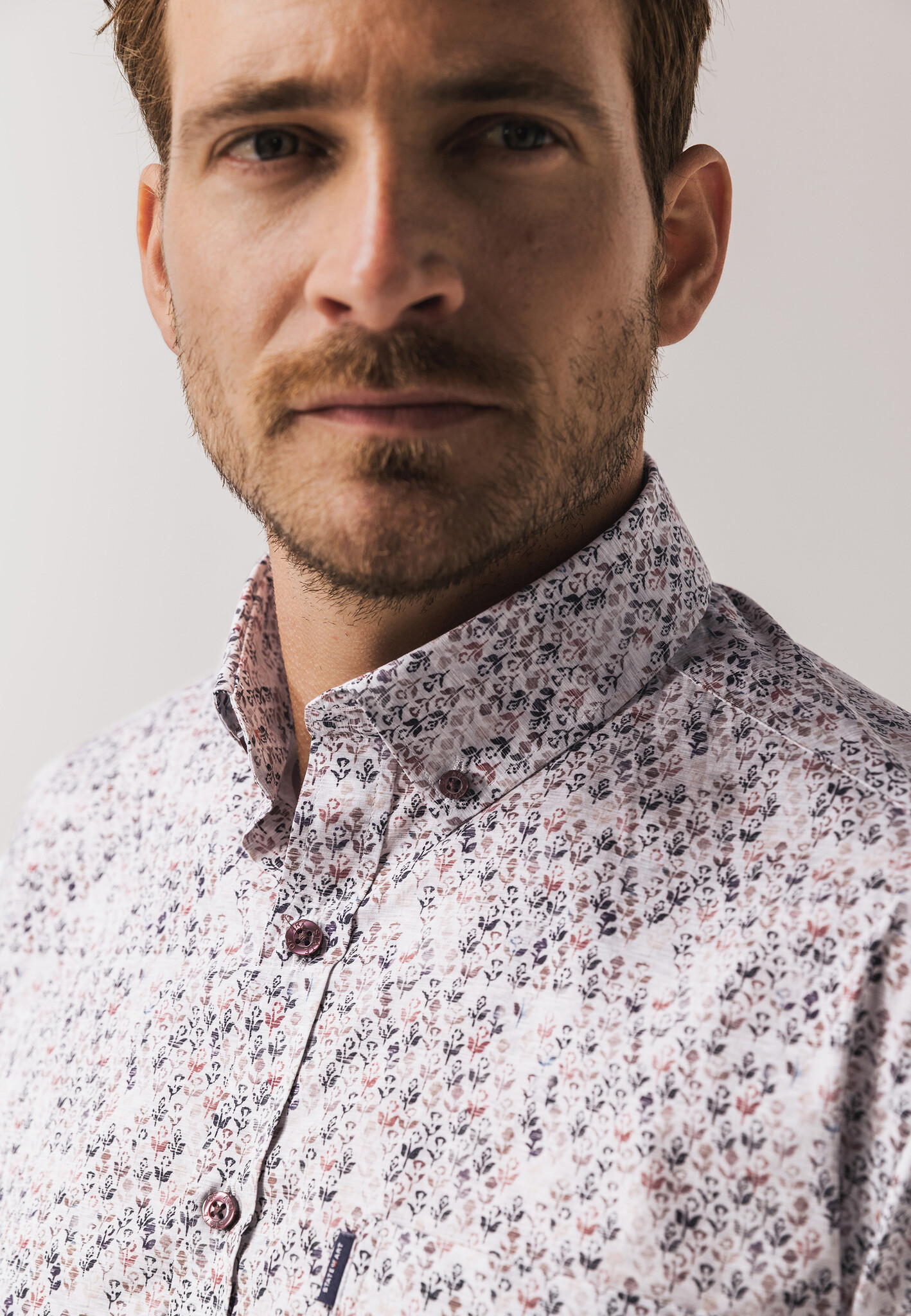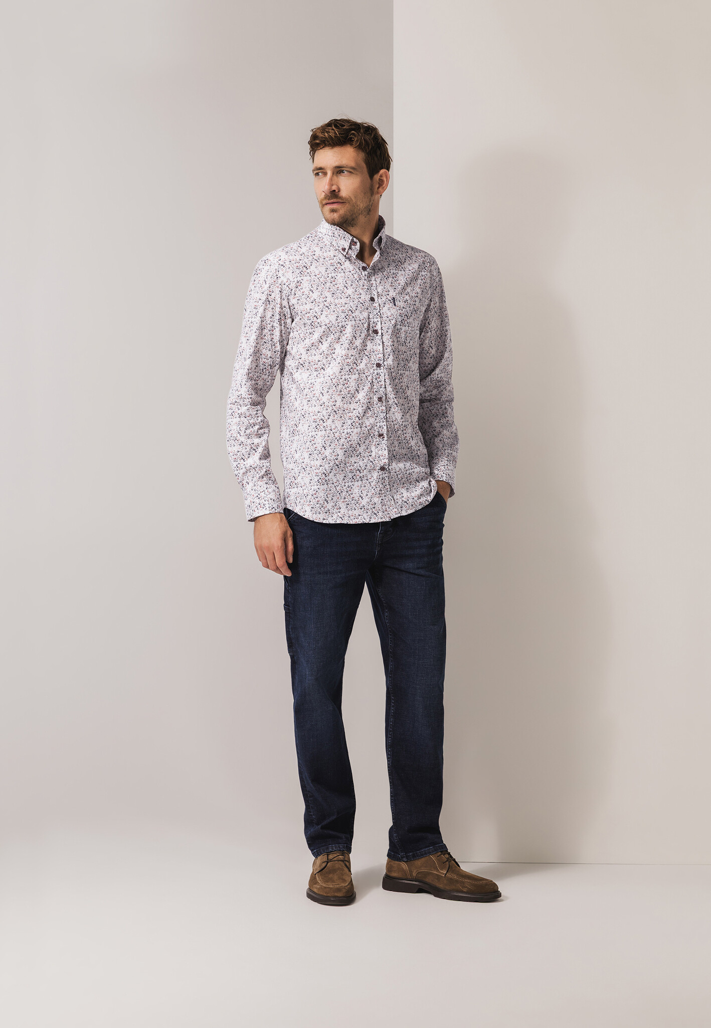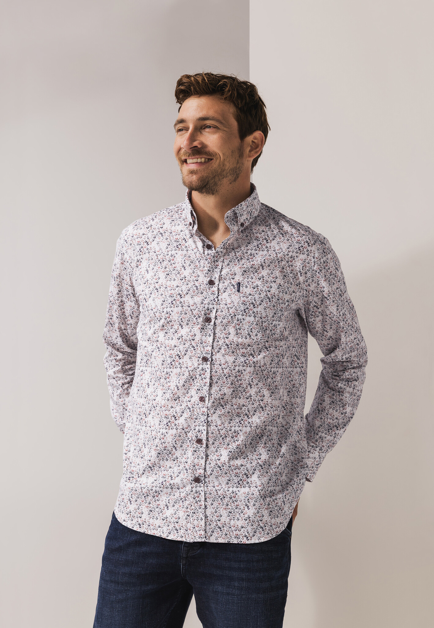 Dit regular fit overhemd is uitgevoerd in poplinstof van katoen met elastaan voor extra comfort. De opvallende bloemenprint geeft het ontwerp een uitgesproken karakter, terwijl de button-down kraag en de borstzak zorgen voor een klassieke uitstraling. Dankzij de soepele, licht rekbare stof is dit overhemd prettig om te dragen en geschikt voor uiteenlopende gelegenheden.