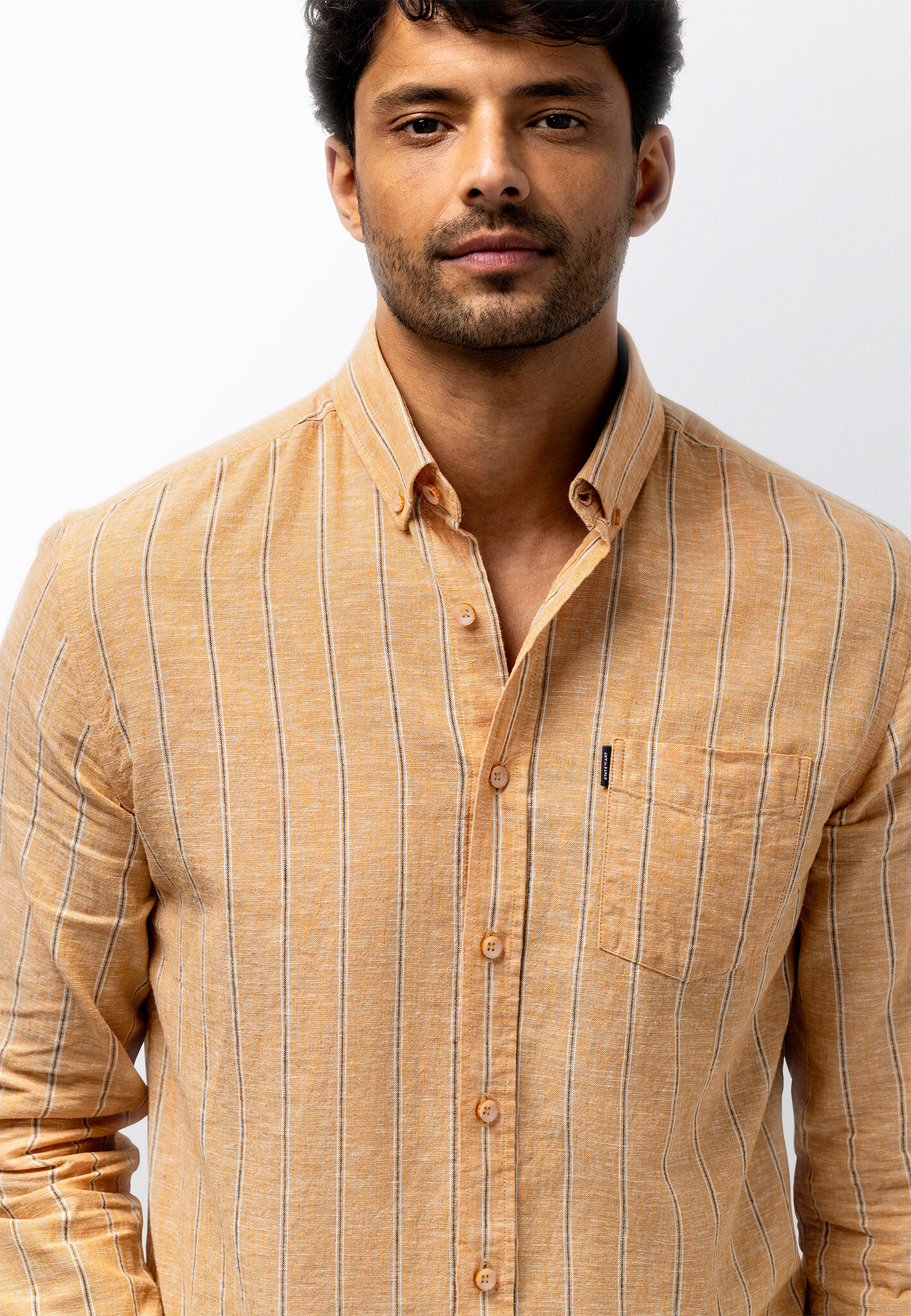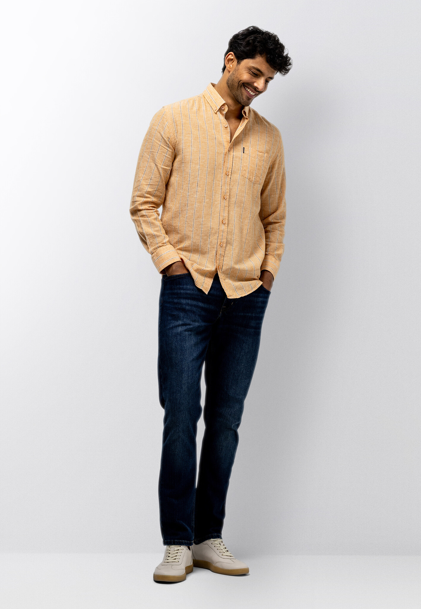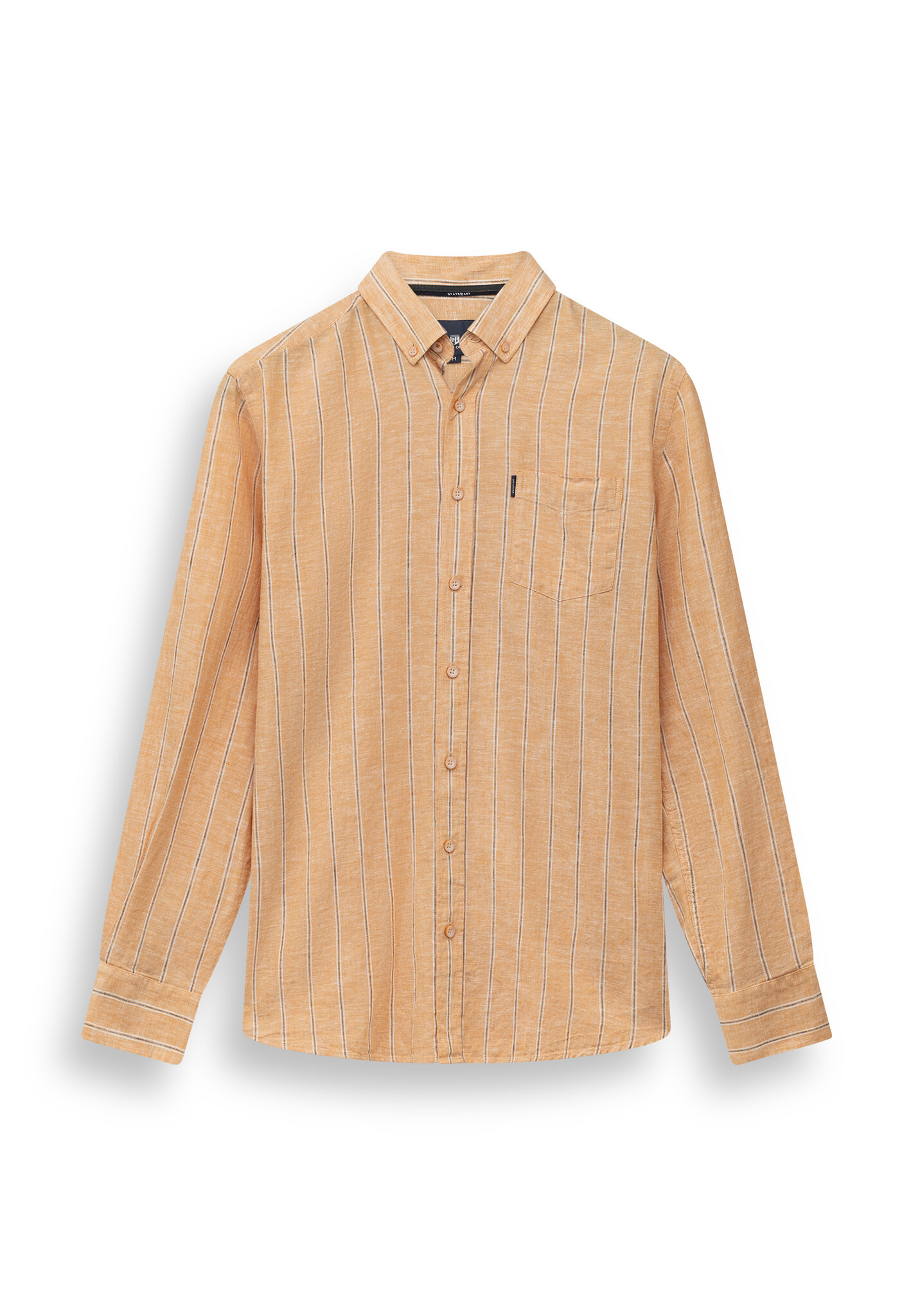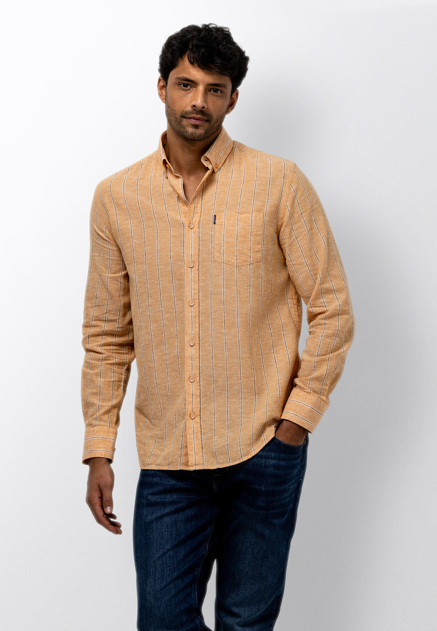 Regular fit overhemd met een gestreept dessin. Gemaakt van yarn-dyed stof, waarbij de garens vooraf worden geverfd. Dit zorgt voor een diepe, gelijkmatige kleur en een verfijnde uitstraling die mooi blijft. Voorzien van een button-downkraag en één borstzak. De mix van linnen en katoen voelt luchtig aan en biedt prettig draagcomfort voor dagelijks gebruik.