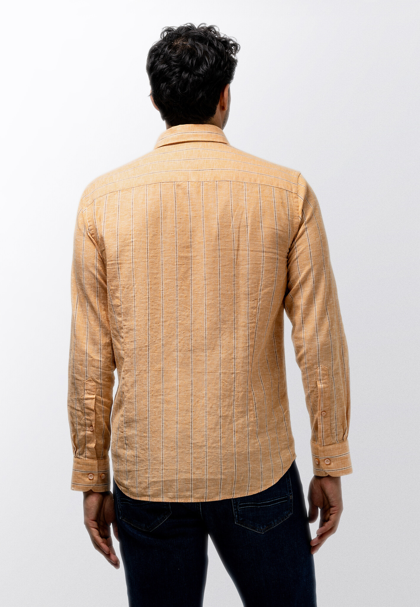 Overhemd gestreept linnenmix peach