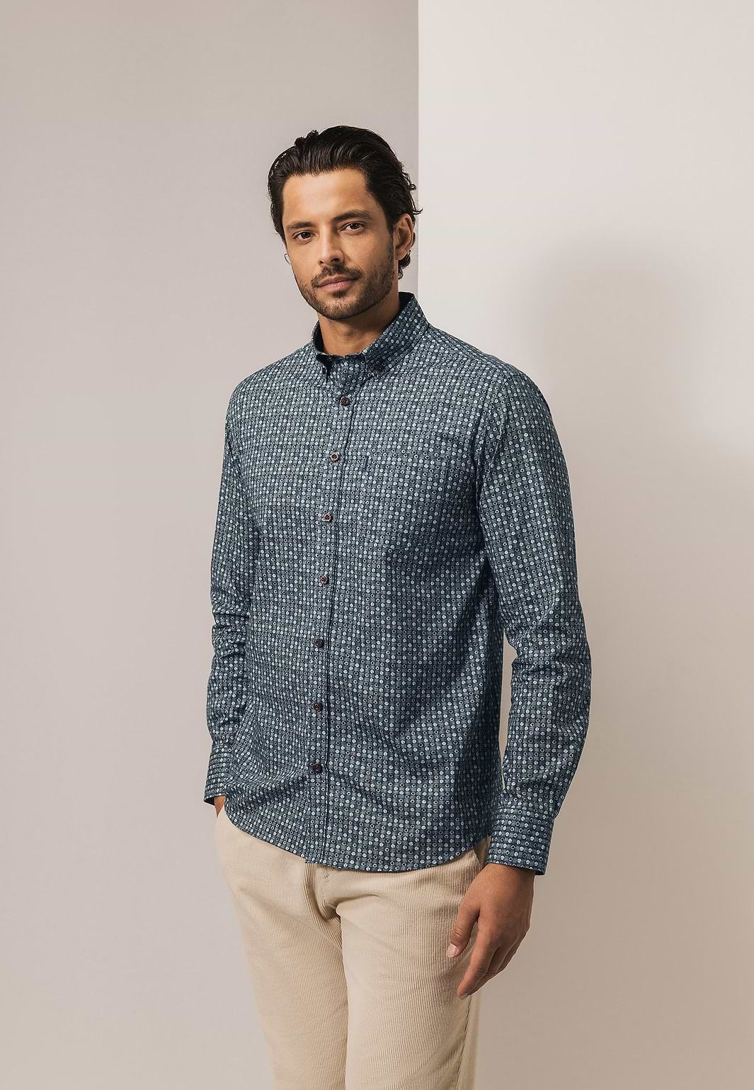 Dit regular fit overhemd is gemaakt van poplinkatoen met een vleugje stretch en heeft een gladde, stevige structuur die mooi valt. De button-downkraag, borstzak en geometrische print met herhalende lijnen en vormen geven het ontwerp een grafisch en ritmisch karakter.