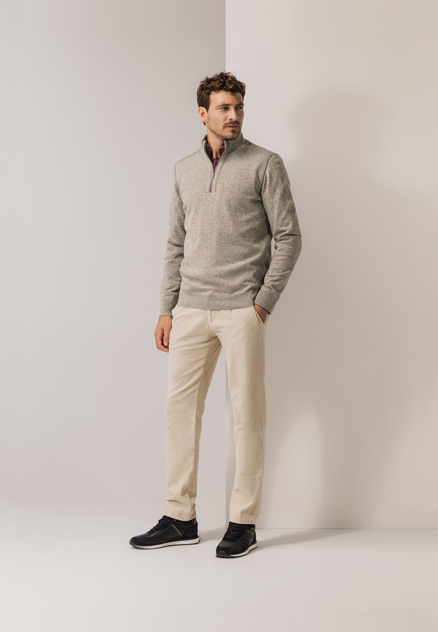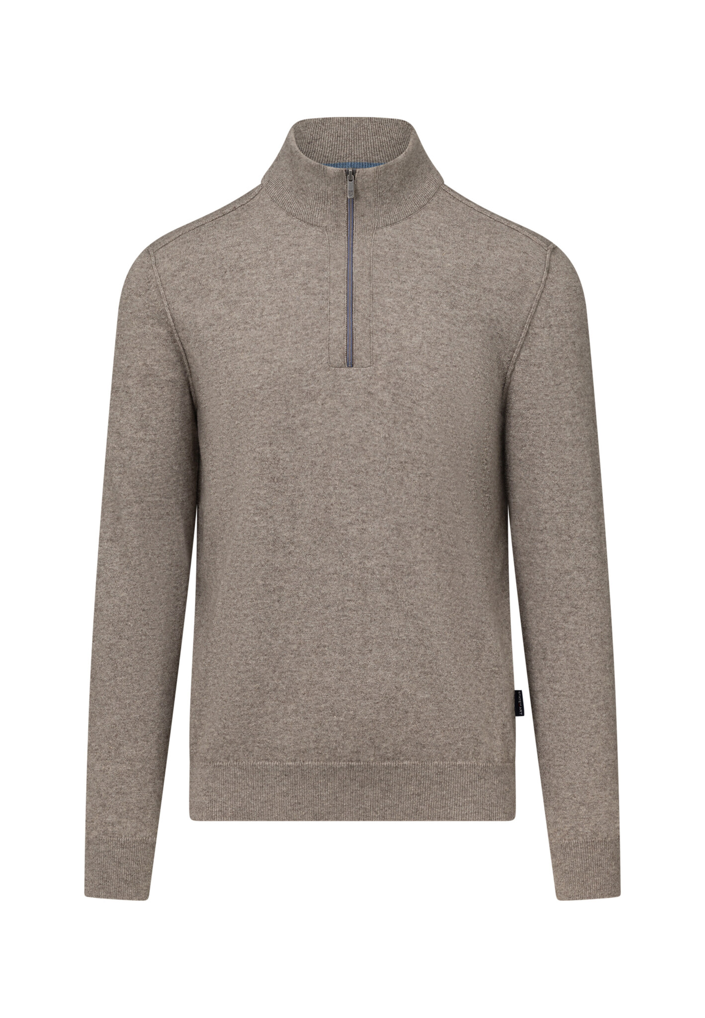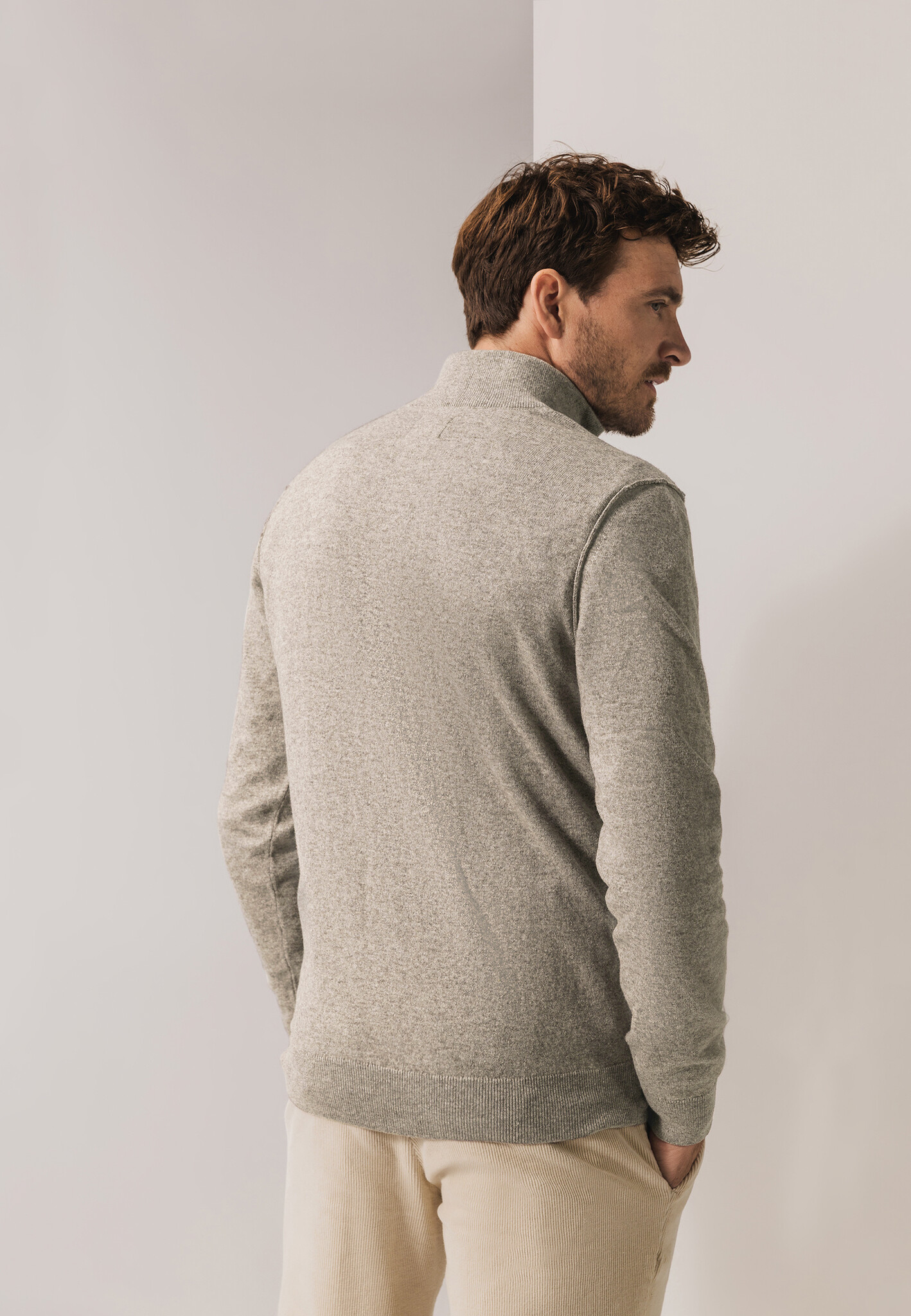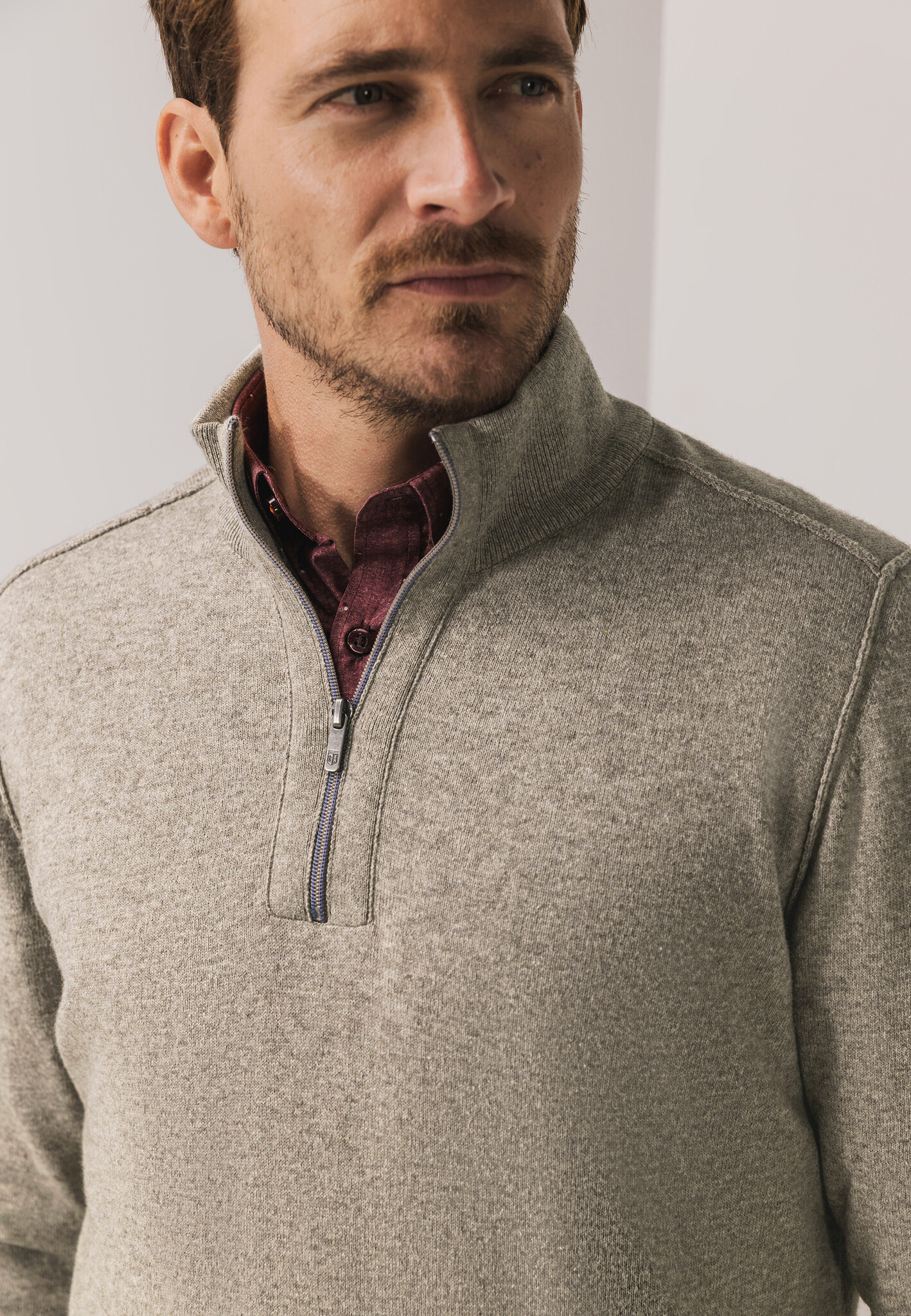 Deze trui is gemaakt van een blend van katoen en wol en voorzien van een regular fit en een halve rits met ribdetail. De binnenstebuiten afgewerkte naden geven een eigentijdse twist, terwijl de rubberen badge op de mouw een subtiele merkidentiteit toevoegt. De effen kleur en het cleane ontwerp maken deze trui tot een veelzijdig kledingstuk voor een comfortabele en moderne look.