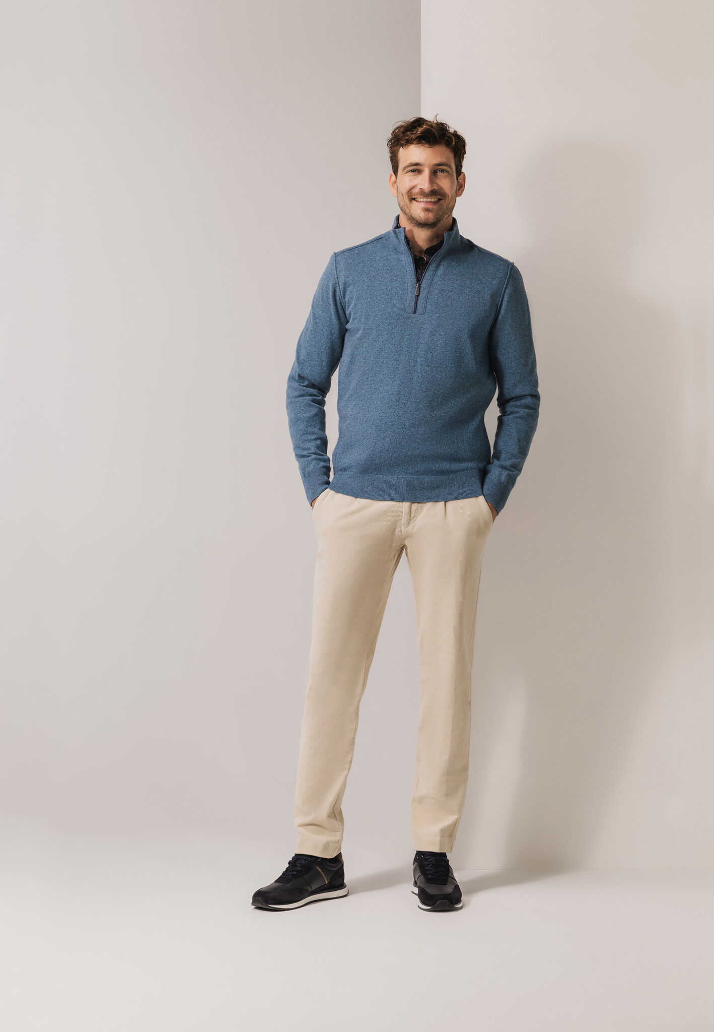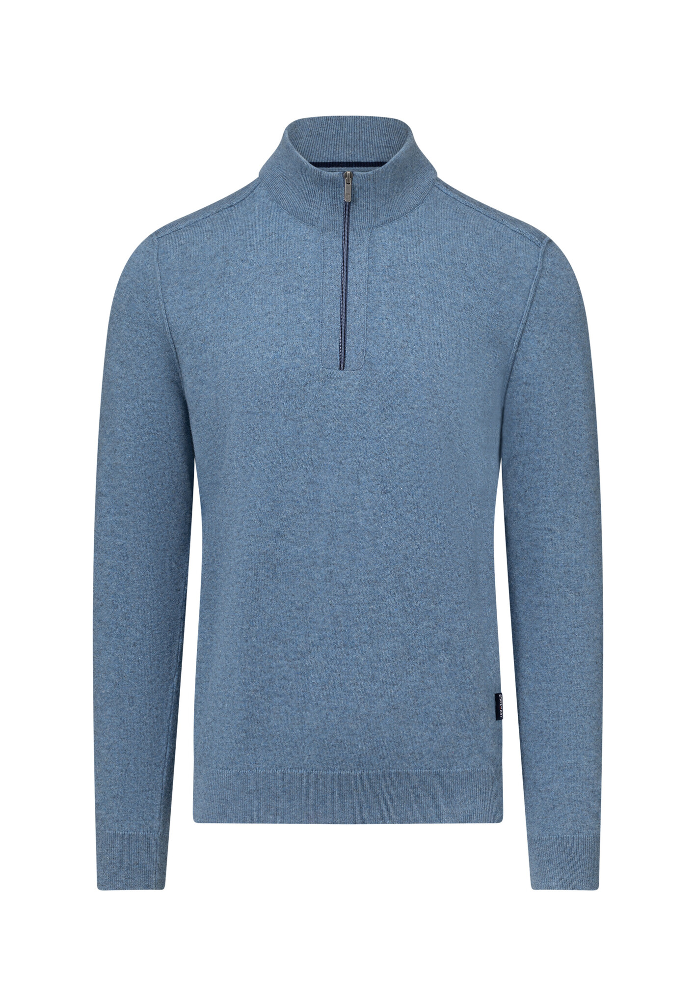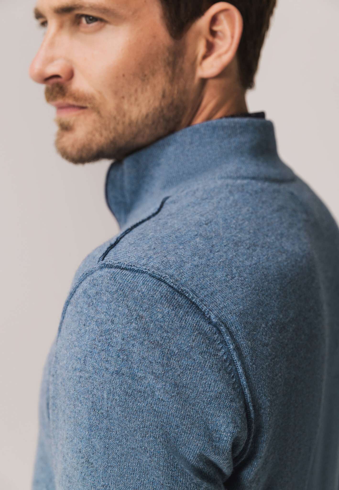 Deze trui is gemaakt van een blend van katoen en wol en voorzien van een regular fit en een halve rits met ribdetail. De binnenstebuiten afgewerkte naden geven een eigentijdse twist, terwijl de rubberen badge op de mouw een subtiele merkidentiteit toevoegt. De effen kleur en het cleane ontwerp maken deze trui tot een veelzijdig kledingstuk voor een comfortabele en moderne look.
