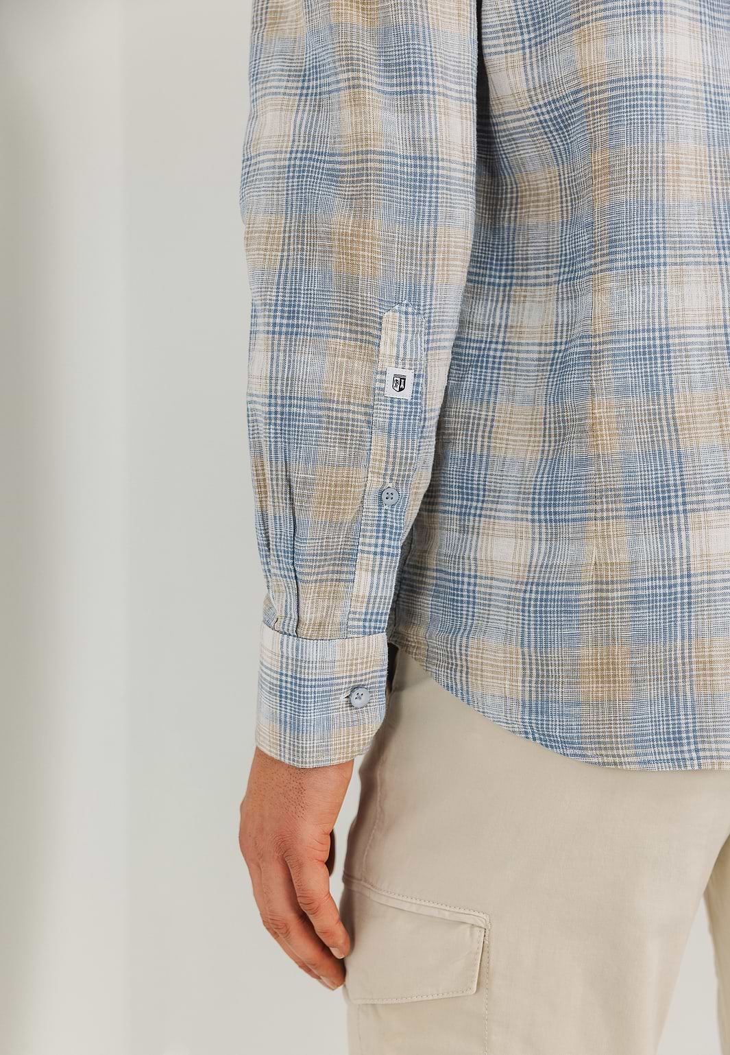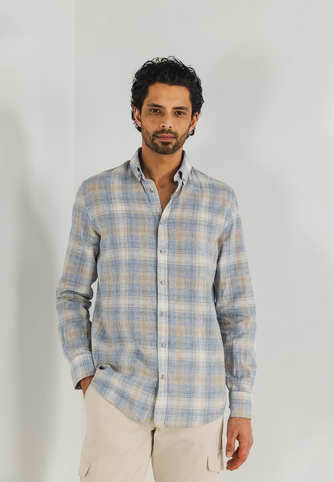Dit overhemd heeft een frisse uitstraling dankzij het ruitdessin in kleurrijke tinten. Het is gemaakt van een blend van linnen en katoen, waardoor het ademend en licht aanvoelt, ideaal voor warmere dagen, terwijl de button-down kraag en de regular fit een moderne pasvorm bieden. Het gebruik van garenverf maakt de kleuren extra levendig, wat zorgt voor een mooie afwerking. Het is een veelzijdig overhemd dat zowel casual als gekleed gedragen kan worden.