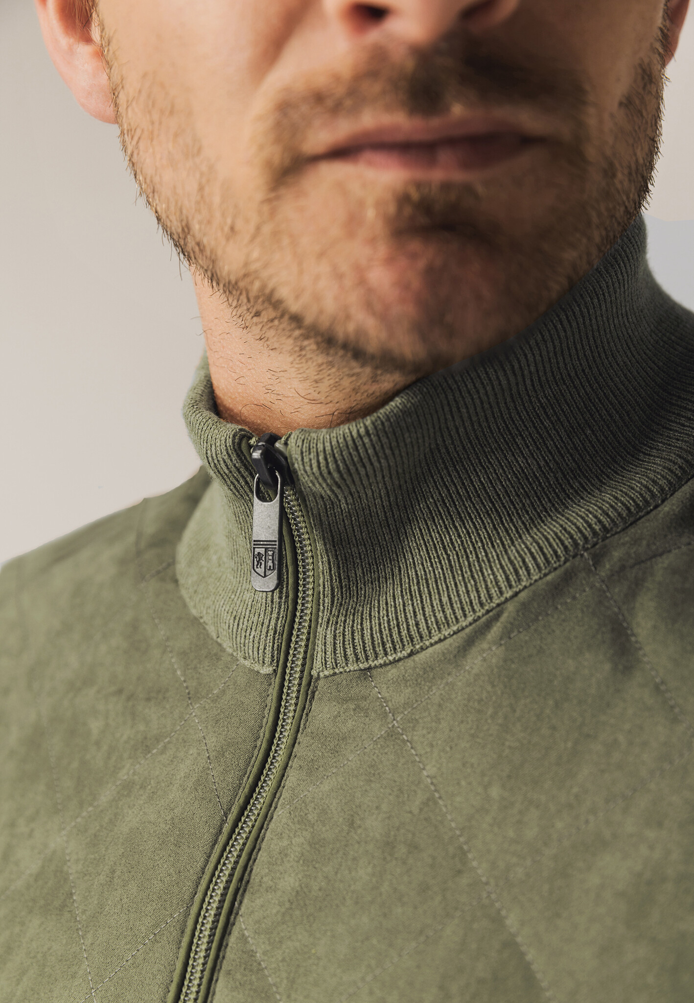 Dit vest met hoge kraag en regular fit heeft een voorzijde van gestepte suèdelook-stof van polyester, afgewerkt met nylon accenten. Door het gebruik van luxueus katoen voelt het comfortabel en stevig aan, terwijl de geribde boorden en ritssluiting zorgen voor een mooie pasvorm. Twee steekzakken met rits en een rubberen badge op de mouw maken het sportieve ontwerp compleet.