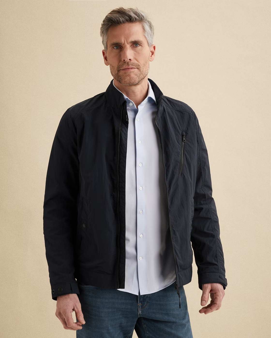 De Biker jacket van Vanguard is een sportieve zomerjas in een kort model. De jas heeft een finish waardoor de jas goed waterafstotend is. Daarnaast heeft de jas voldoende zakken.