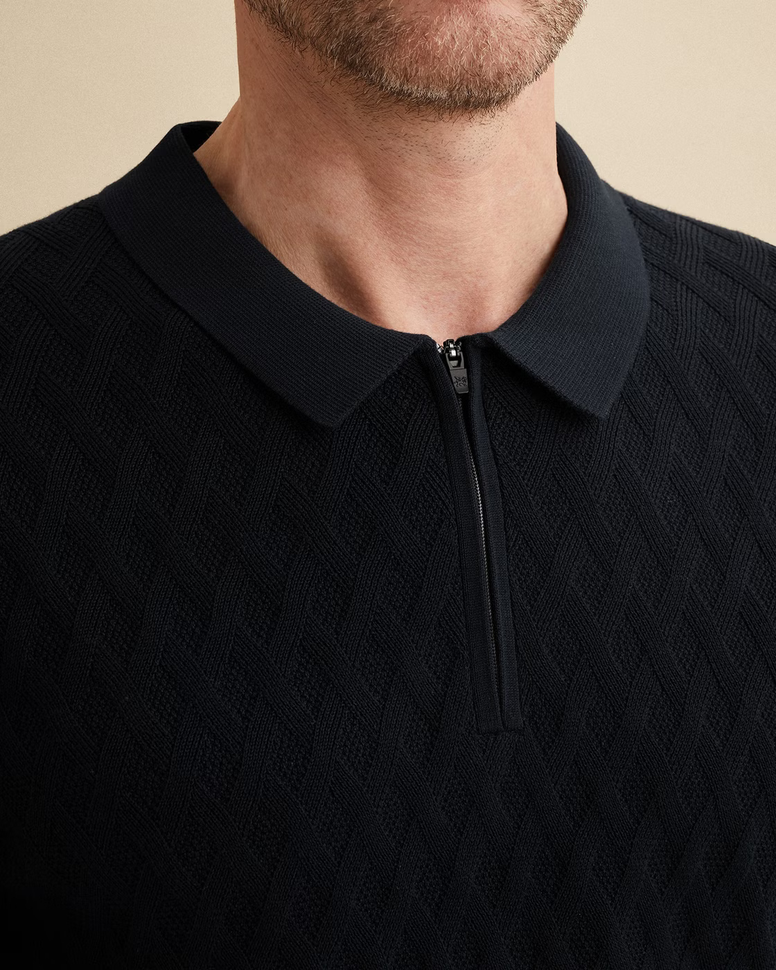 Deze gebreide Vanguard polo is gemaakt van katoen/modal en uitgevoerd in een iets grovere breistructuur. De ritssluiting geeft het item een stoere, maar stijlvolle uitstraling.