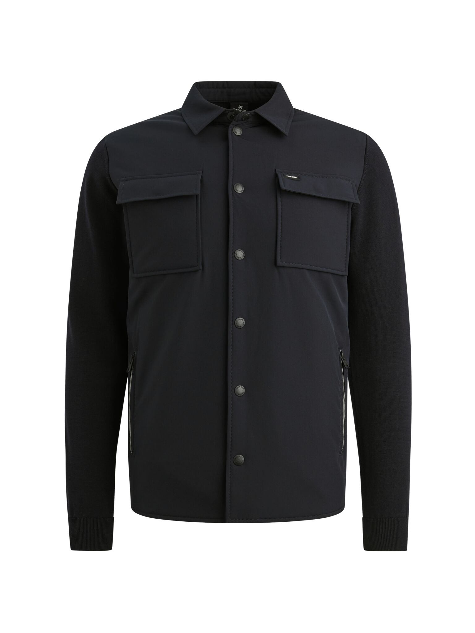 Dit Vanguard shirt jacket combineert verschillende materialen. De voorkant is uitgevoerd in geweven nylon, terwijl de mouwen en het rugpaneel zijn gebreid van katoen/modal. De borstzakken en zijzakken met rits ronden het design af.